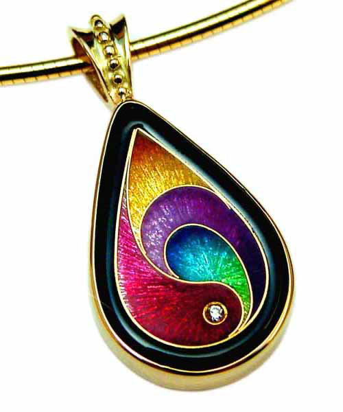 - Cloisonné de oro de 24 quilates engastado en oro amarillo de 14 quilates