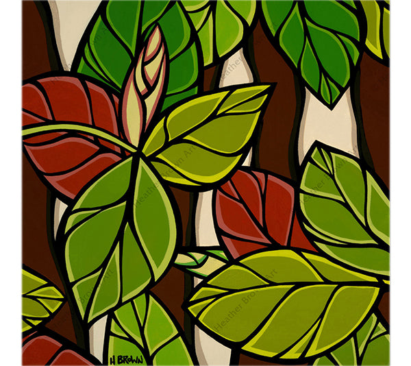 Primera parte de «Botánica Hawaiana», la segunda serie de la artista de surf de la costa norte de Oahu, Heather Brown. Esta lámina de edición abierta se puede adquirir individualmente o en un conjunto de 4. Consulte la « Serie Botánica Hawaiana » para obtener más información.