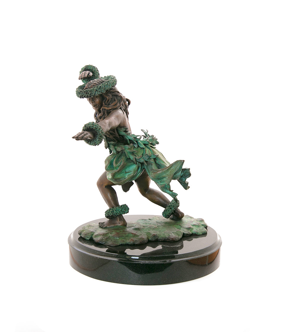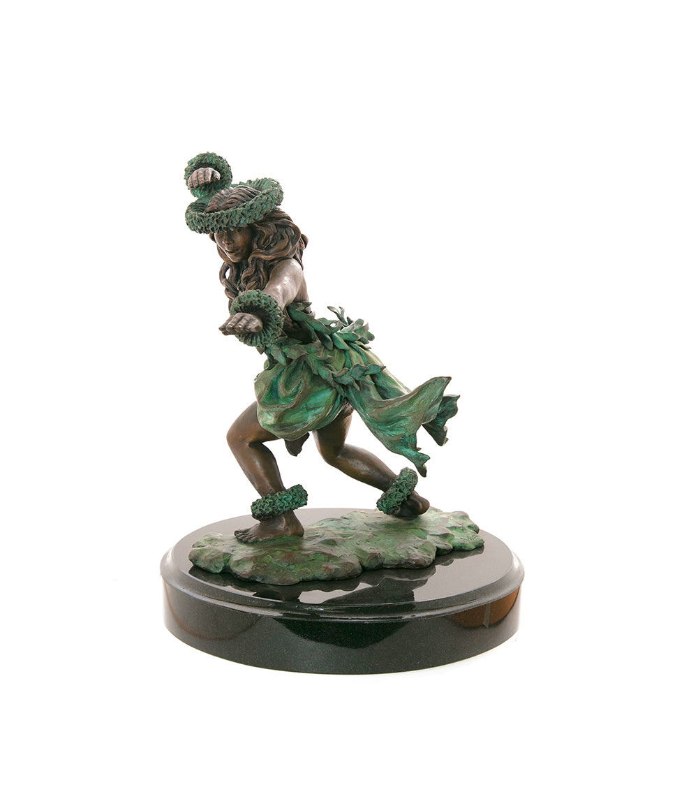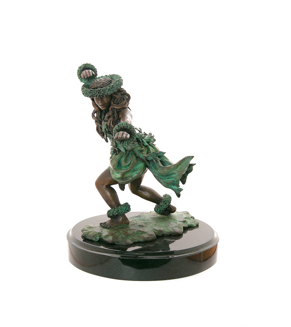 Estas tres figuras de bronce representan la danza hula kahiko, el antiguo estilo de danza hawaiana. Las dos bailarinas, espíritus del viento, simbolizan la danza y el canto del hula hawaiano. Juntos, estos vientos elevan al poderoso 'Io, el halcón hawaiano, el bailarín central, que representa el espíritu de Hawái.