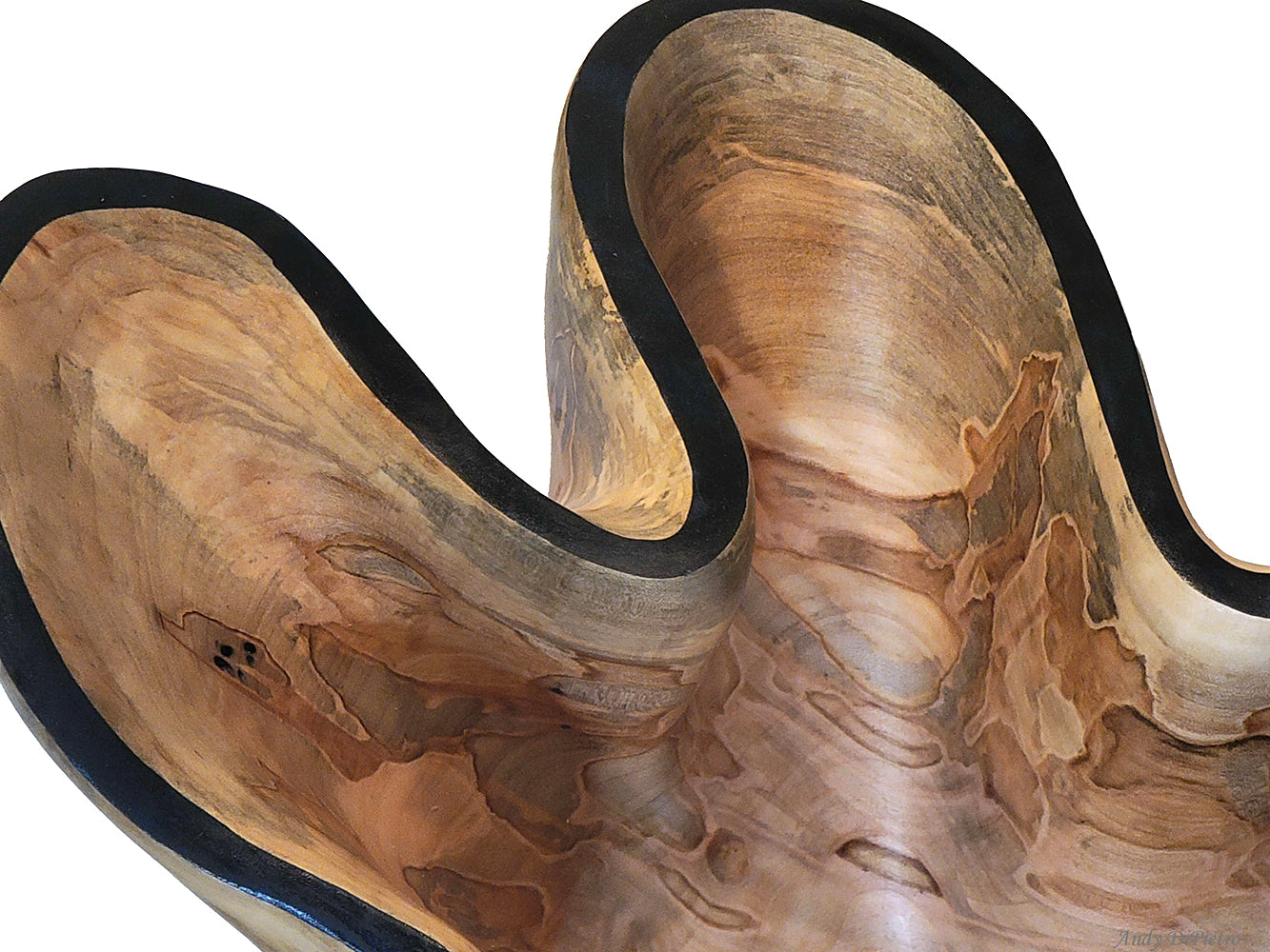 El arte en madera de Andy es la culminación de su amor de toda la vida por la carpintería y sus habilidades artísticas y de ingeniería. Quienes lo conocen por primera vez perciben rápidamente su pasión y dedicación al arte en madera. Andy siempre se ha inspirado en artistas capaces de transformar su material de maneras inimaginables. Por ejemplo, es un gran admirador del artista del vidrio de Seattle , Chihuly , y de los legendarios artesanos del vidrio de Murano . Andy se esfuerza por crear tallas de madera que imiten los pliegues ondulantes de la tela. Talla la madera húmeda y la deja secar lentamente. Su técnica de talla en madera es una que ha perfeccionado a lo largo de años de práctica y experimentación.