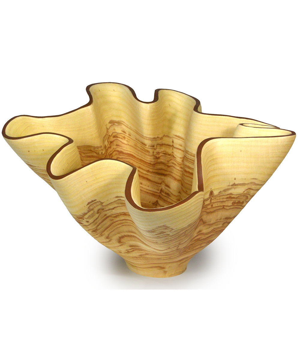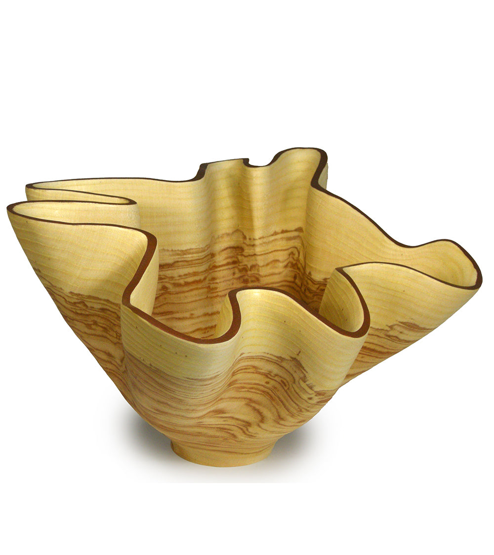 El arte en madera de Andy es la culminación de su amor de toda la vida por la carpintería y sus habilidades artísticas y de ingeniería. Quienes lo conocen por primera vez perciben rápidamente su pasión y dedicación al arte en madera. Andy siempre se ha inspirado en artistas capaces de transformar su material de maneras inimaginables. Por ejemplo, es un gran admirador del artista del vidrio de Seattle , Chihuly , y de los legendarios artesanos del vidrio de Murano . Andy se esfuerza por crear tallas de madera que imiten los pliegues ondulantes de la tela. Talla la madera húmeda y la deja secar lentamente. Su técnica de talla en madera es una que ha perfeccionado a lo largo de años de práctica y experimentación.