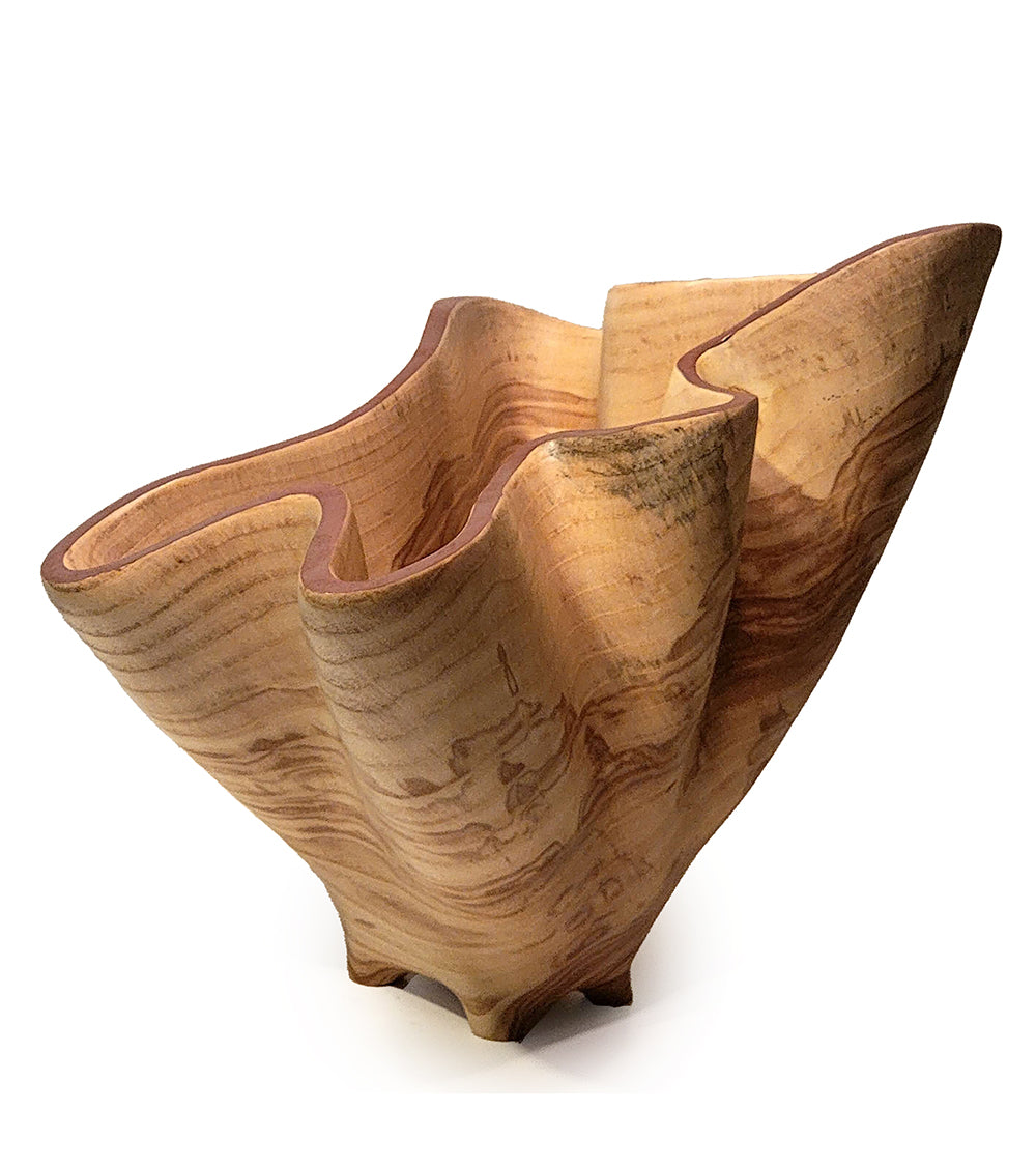 El arte en madera de Andy es la culminación de su amor de toda la vida por la carpintería y sus habilidades artísticas y de ingeniería. Quienes lo conocen por primera vez perciben rápidamente su pasión y dedicación al arte en madera. Andy siempre se ha inspirado en artistas capaces de transformar su material de maneras inimaginables. Por ejemplo, es un gran admirador del artista del vidrio de Seattle , Chihuly , y de los legendarios artesanos del vidrio de Murano . Andy se esfuerza por crear tallas de madera que imiten los pliegues ondulantes de la tela. Talla la madera húmeda y la deja secar lentamente. Su técnica de talla en madera es una que ha perfeccionado a lo largo de años de práctica y experimentación.