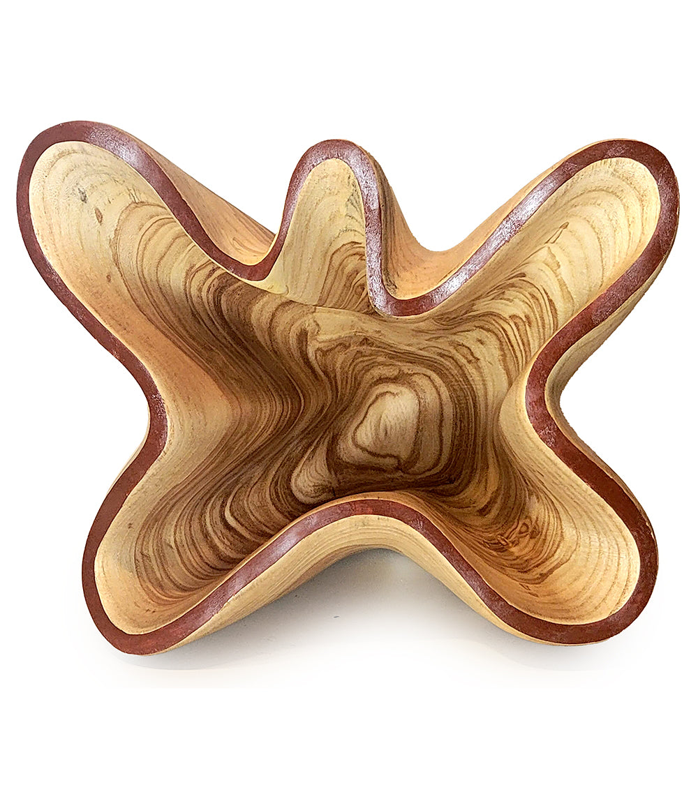 Cuenco esculpido en hermosa madera de fresno de olivo con veta marcada. Ligeramente arenado para resaltar las vetas y acabado al aceite. 25,4 cm de ancho x 26,7 cm de profundidad x 30,5 cm de alto.