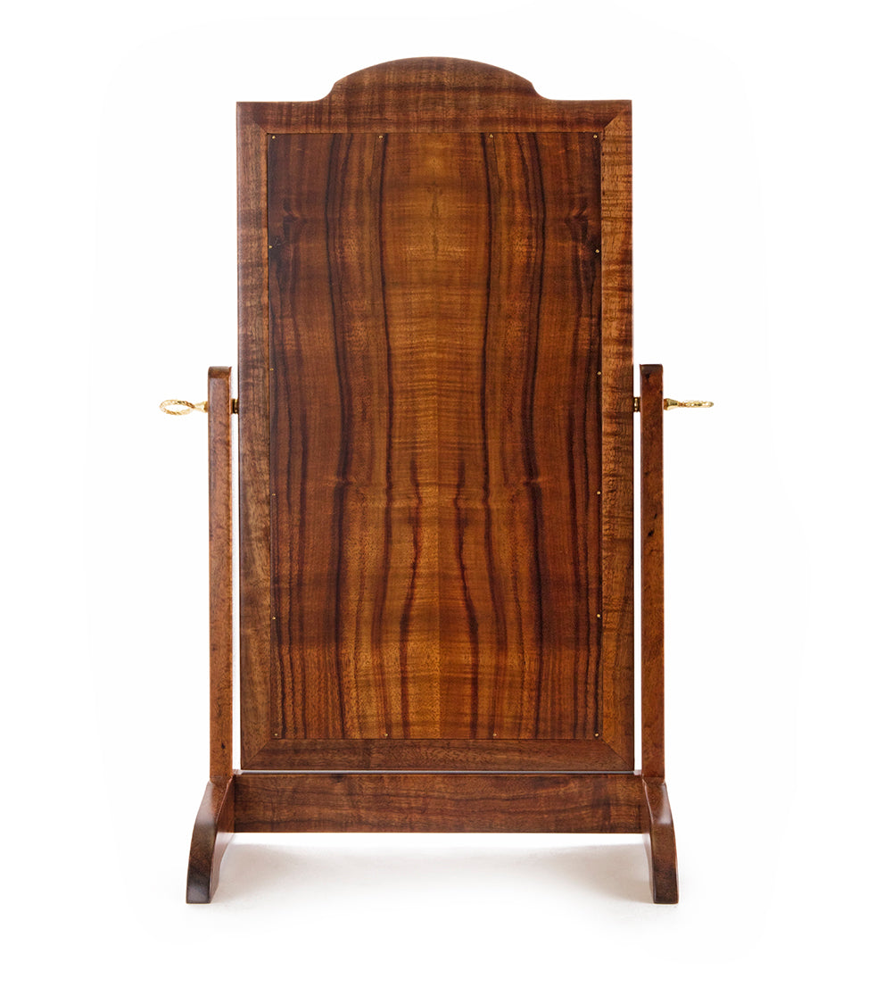 Nuestros artesanos hawaianos crearon una versión de sobremesa de nuestro popular espejo de pie Koa Cheval, ideal para colocar sobre cualquier cómoda o tocador. Unos pasadores ajustables en el centro del marco de koa permiten inclinar el espejo en cualquier ángulo.