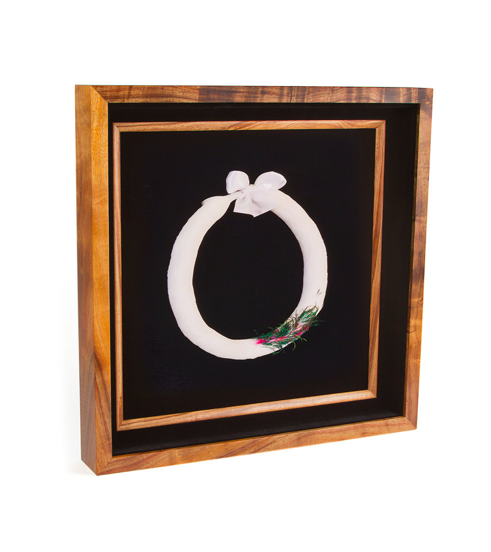 Enmarcadas en cajas de sombra de koa por Martin & MacArthur. Estas guirnaldas de plumas son perfectas para el hogar o la oficina. Si no están en stock, el plazo de producción es de 6 a 8 semanas.