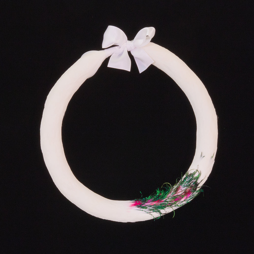 El experto artista hawaiano de leis de plumas, Boris Kekaiuluikahikina Huang, crea estos impresionantes leis de plumas. Ata cada pluma a mano, una por una, utilizando las antiguas técnicas del antiguo Hawái que le transmitió la difunta y renombrada artesana de leis de plumas, la tía Mary Lou Kekuewa.