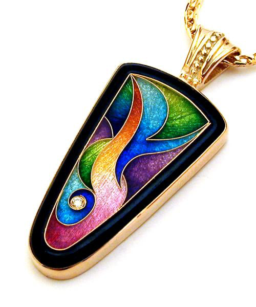 - Cloisonné de oro de 24 quilates engastado en oro amarillo de 14 quilates