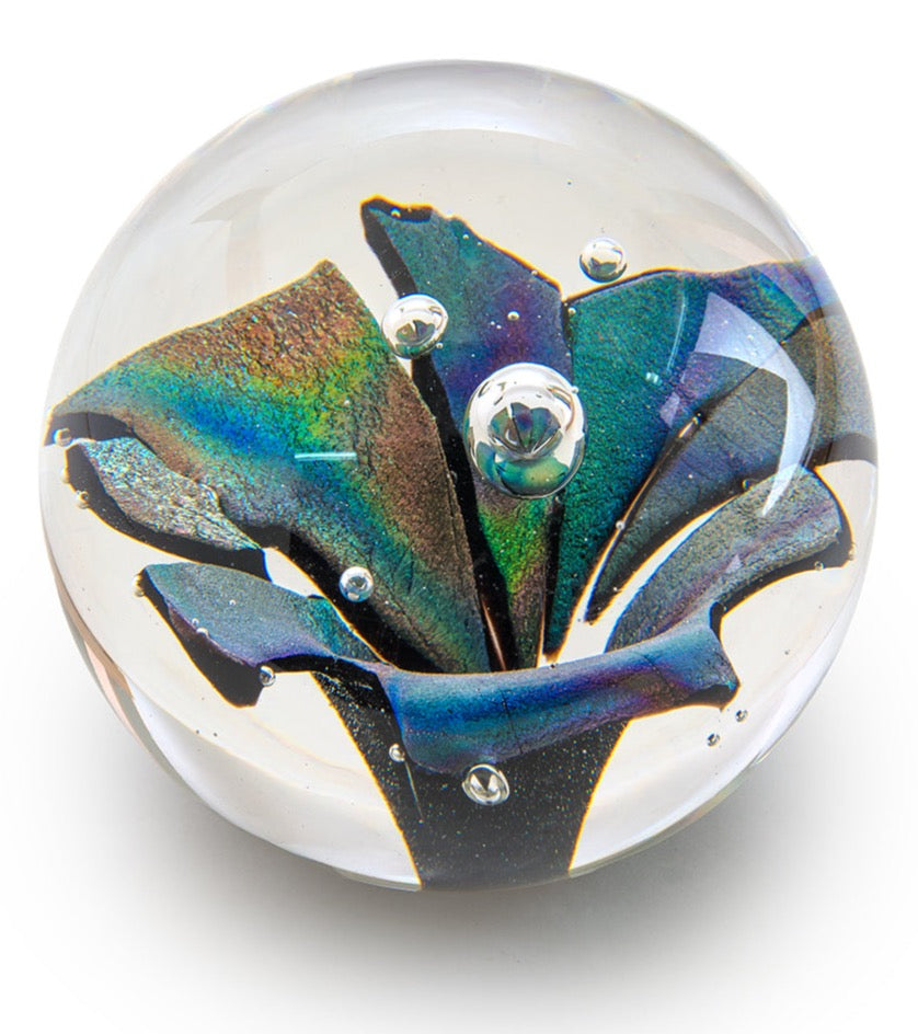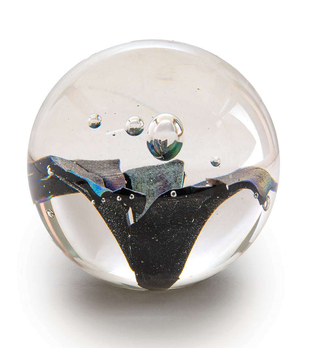Escultura de vidrio "Pesapapeles redondo brillante" de Ben Silver