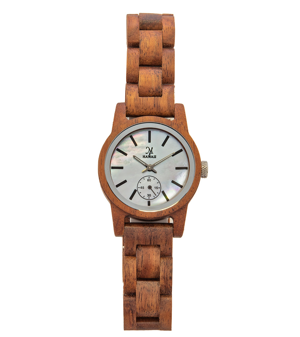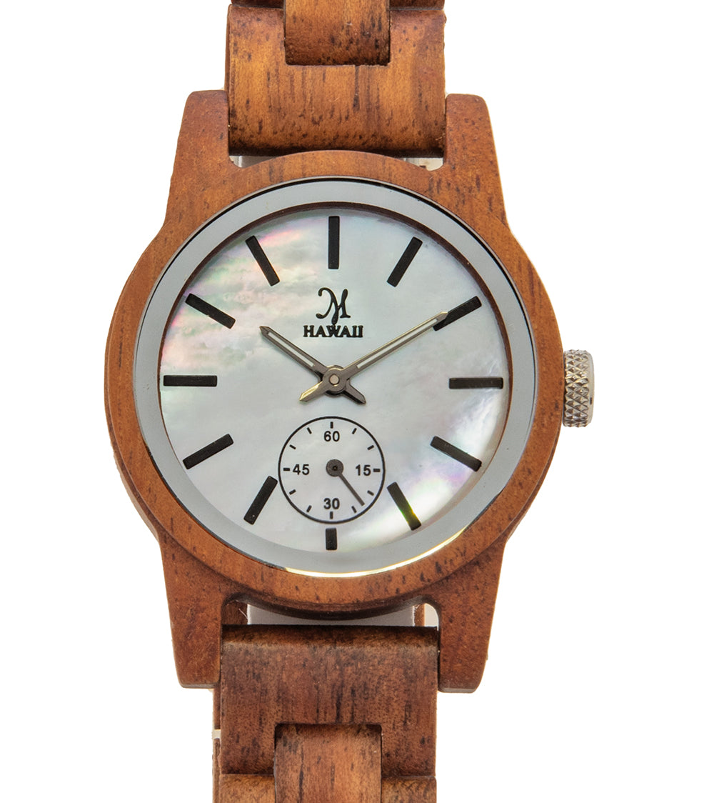 Los artesanos de Martin & MacArthur se enorgullecen de presentar este elegante reloj de madera de koa, elaborado con koa maciza de nuestra propia reserva privada, cosechada en la Isla Grande. Seleccionamos cuidadosamente la koa por su hermoso color y veta. Los eslabones y la caja están hechos de piezas macizas de madera de koa. Sin chapas. Koa maciza. Este impresionante reloj de madera de koa es exclusivo de Martin & MacArthur.