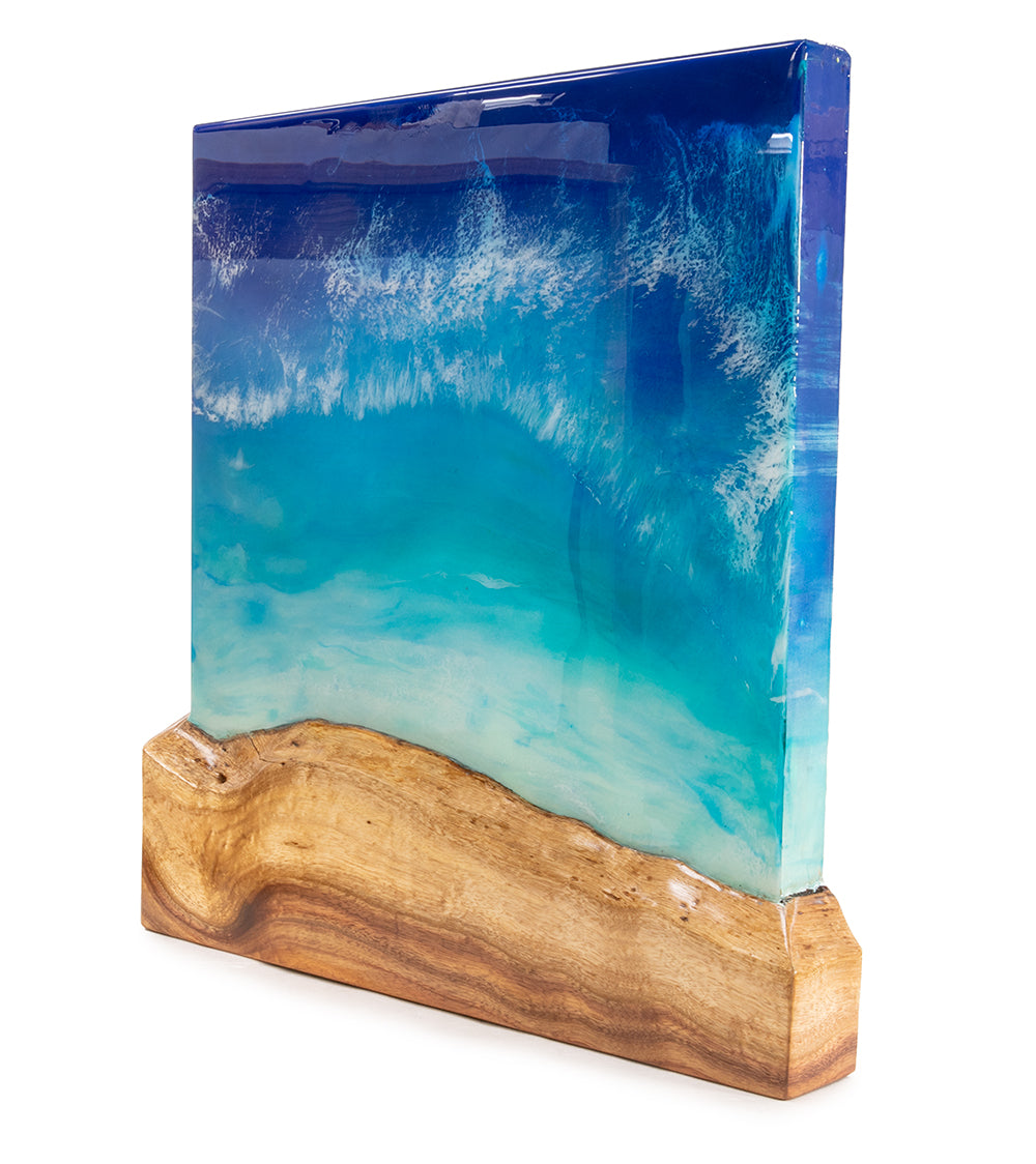 - Medio: Koa rizado Martin & MacArthur y resina epoxi sobre madera.