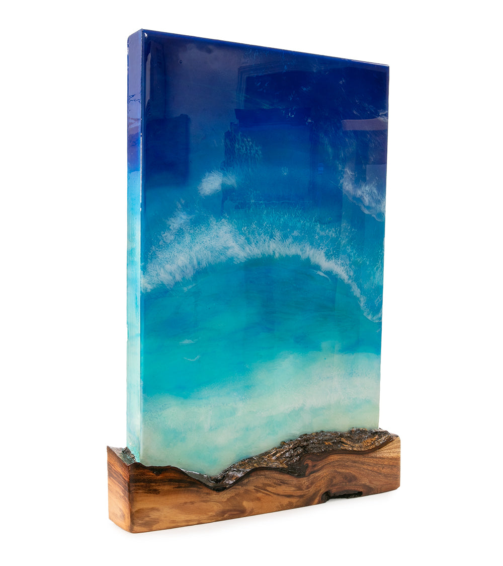 Arte mural de koa/resina "Pohaku Point" de S. Isaac Anderson