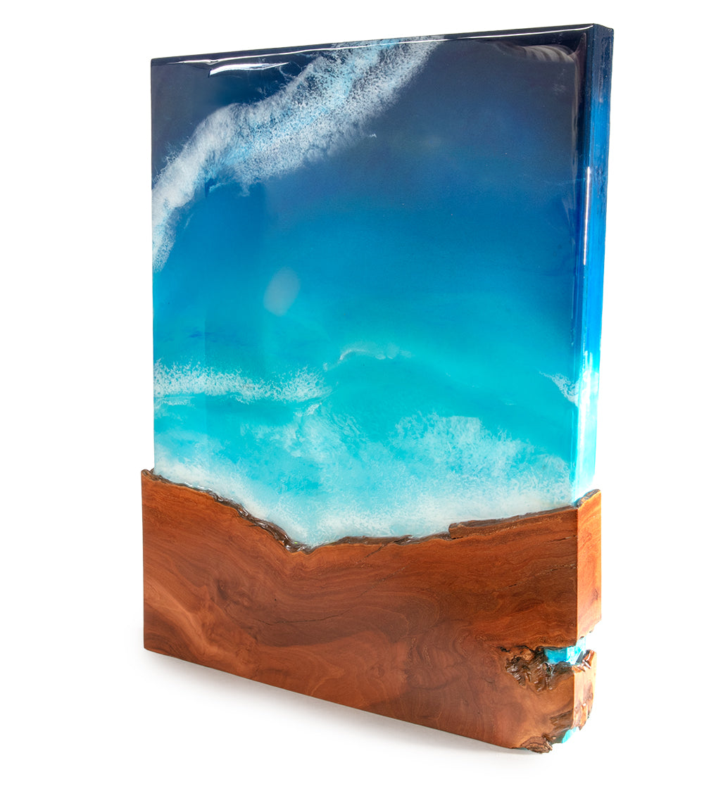 Arte mural de koa/resina "Pohaku Point" de S. Isaac Anderson