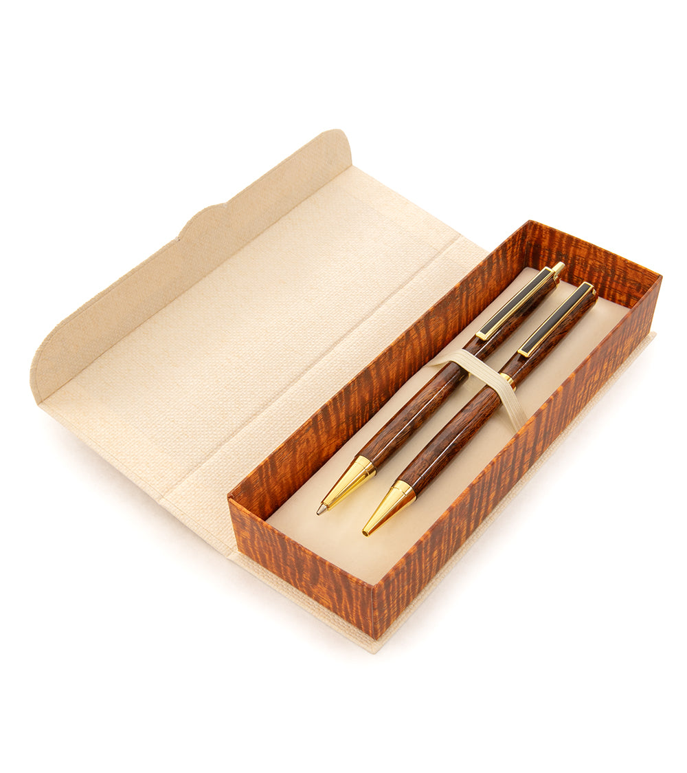 Esta clásica pluma estilo Slim está hecha por el artesano kama'aina Gary y su familia en Honolulu, Hawái. Gary es un perfeccionista en diseño y calidad. Selecciona personalmente toda la madera de koa que utiliza en sus plumas, proveniente de una finca privada en la isla de Hawái. Esta pluma tiene un diseño clásico y un equilibrio perfecto para disfrutar escribiendo durante años.