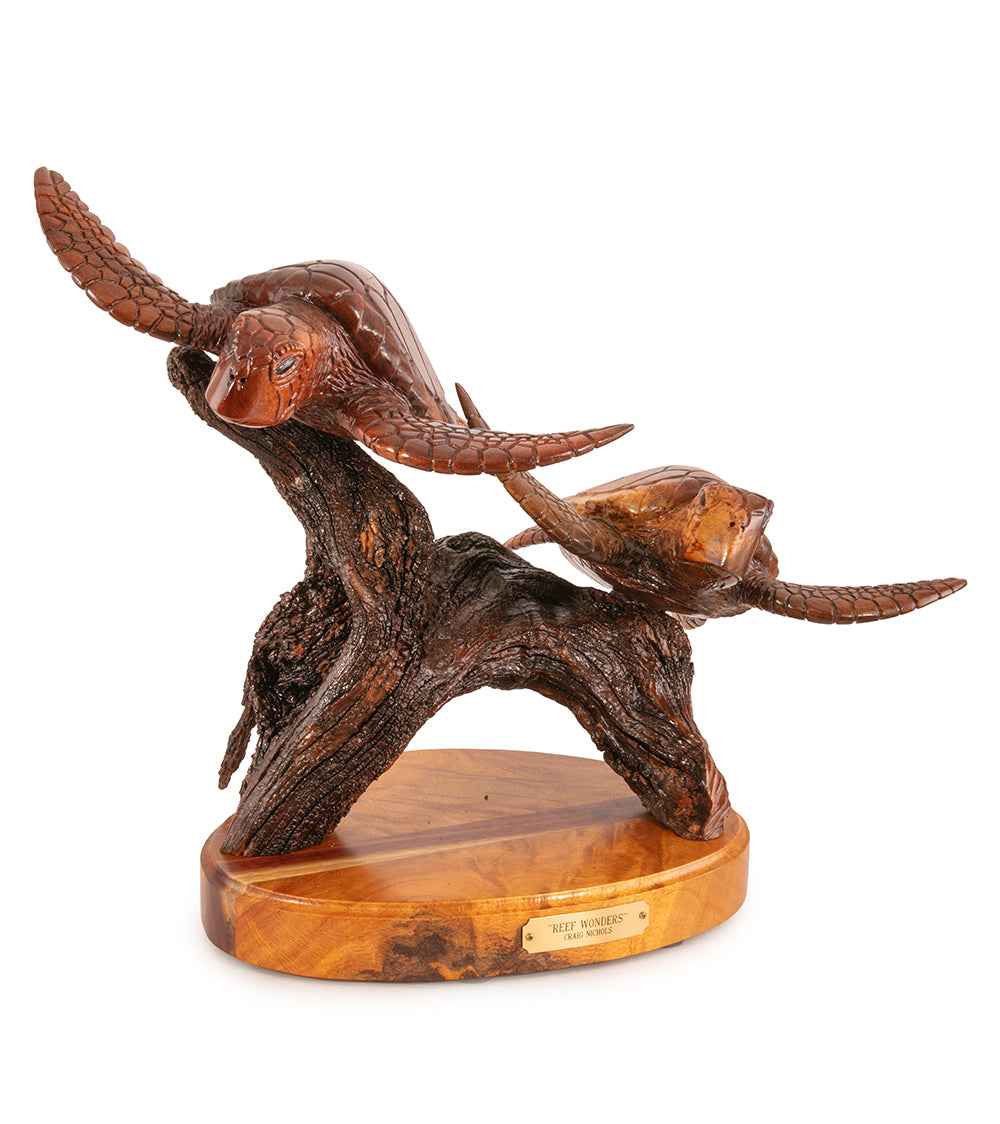 Escultura de madera de koa "Maravillas del arrecife" de Craig Nichols