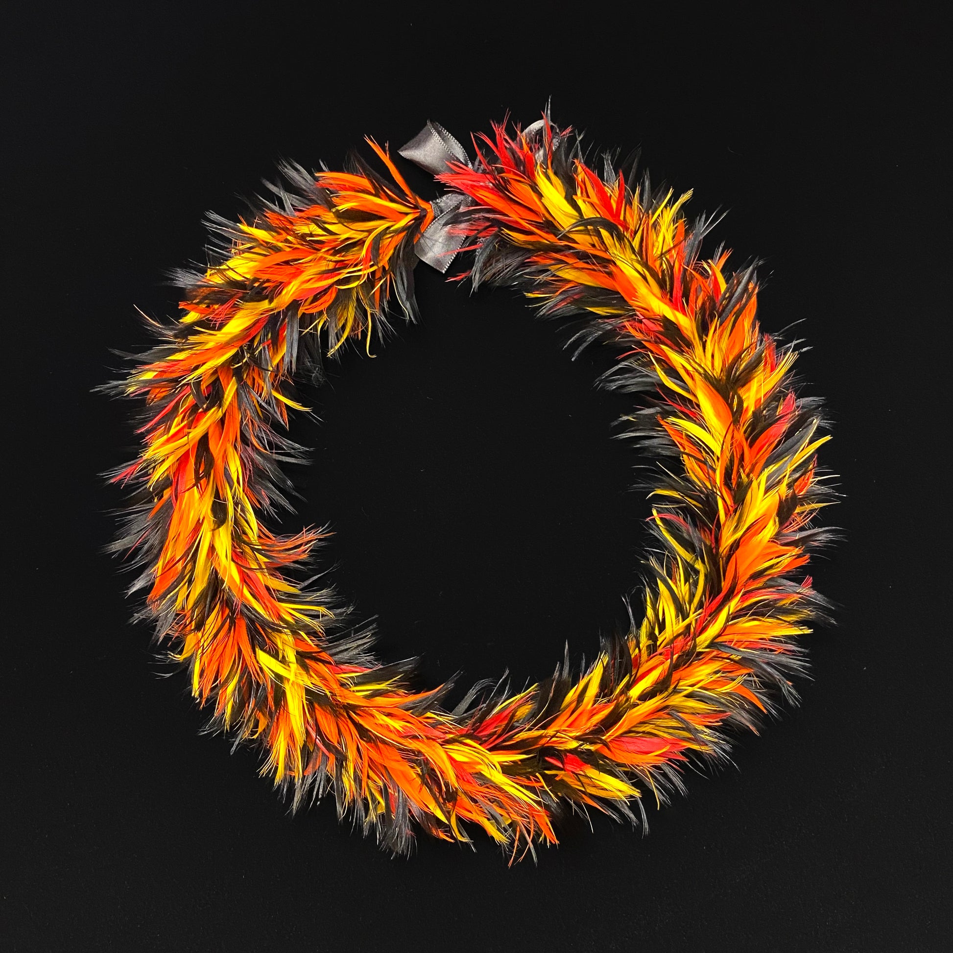 El experto artista de leis de plumas hawaianos Boris Kekaiuluikahikina Huang crea estos impresionantes leis de plumas hawaianos. Ata a mano cada pluma individualmente utilizando las antiguas técnicas del antiguo Hawái que le transmitió la difunta y reconocida experta en leis de plumas, la tía Mary Lou Kekuewa.