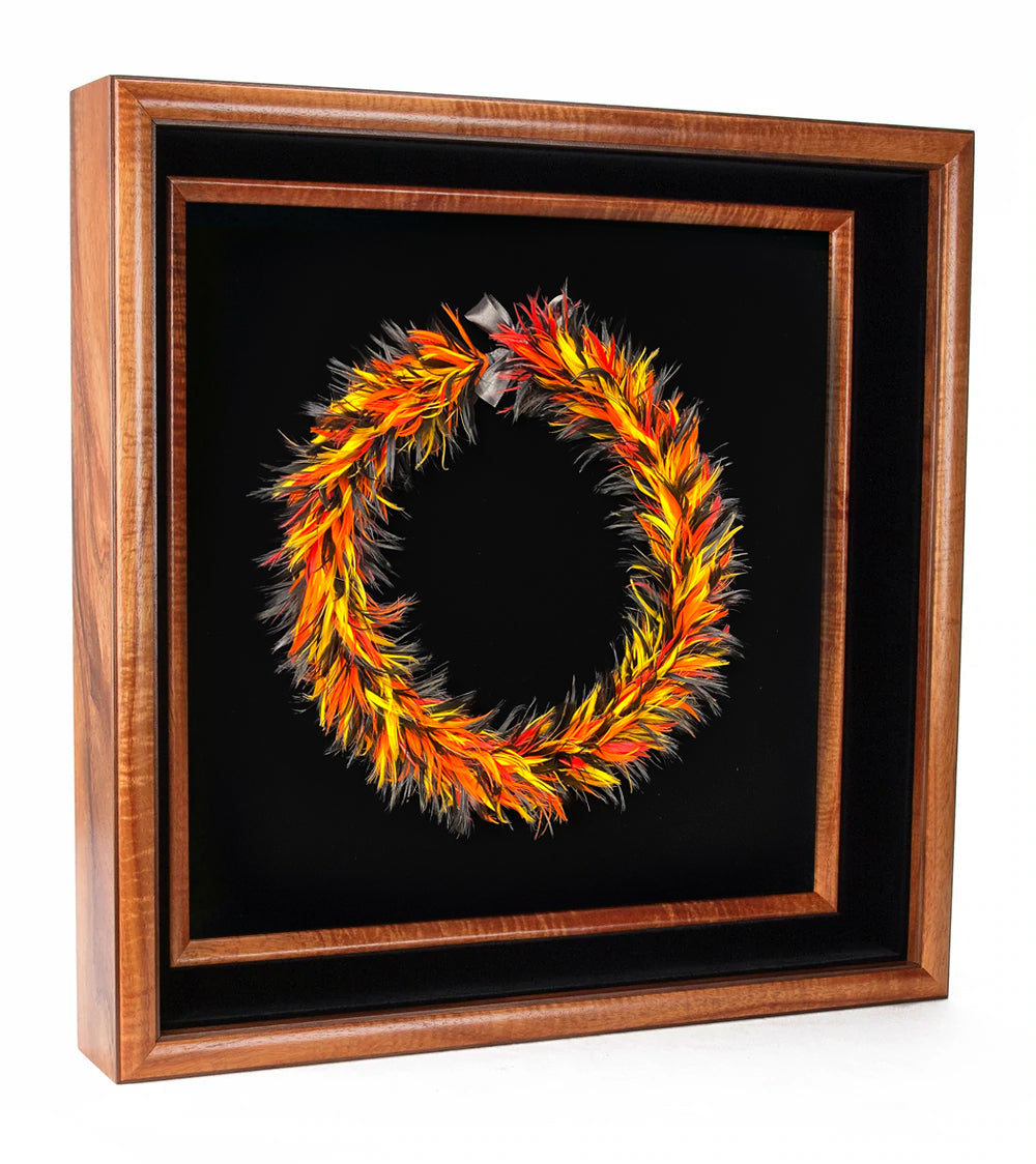Enmarcados en cajas de sombra de koa por Martin & MacArthur. Estos collares de plumas son perfectos para el hogar o la oficina. El plazo de producción es de 6 a 8 semanas si no hay existencias.