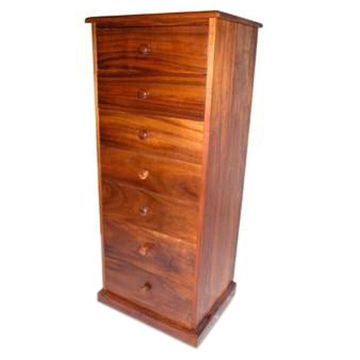 Nuestra cómoda alta Martin Signature está hecha de madera de koa cultivada en la isla de Hawái. Es delgada pero robusta. Cuenta con siete cajones que se cierran automáticamente, de forma silenciosa y sin esfuerzo. Fabricada por los expertos artesanos de Martin & MacArthur en nuestro taller de muebles en Honolulu, Hawái.