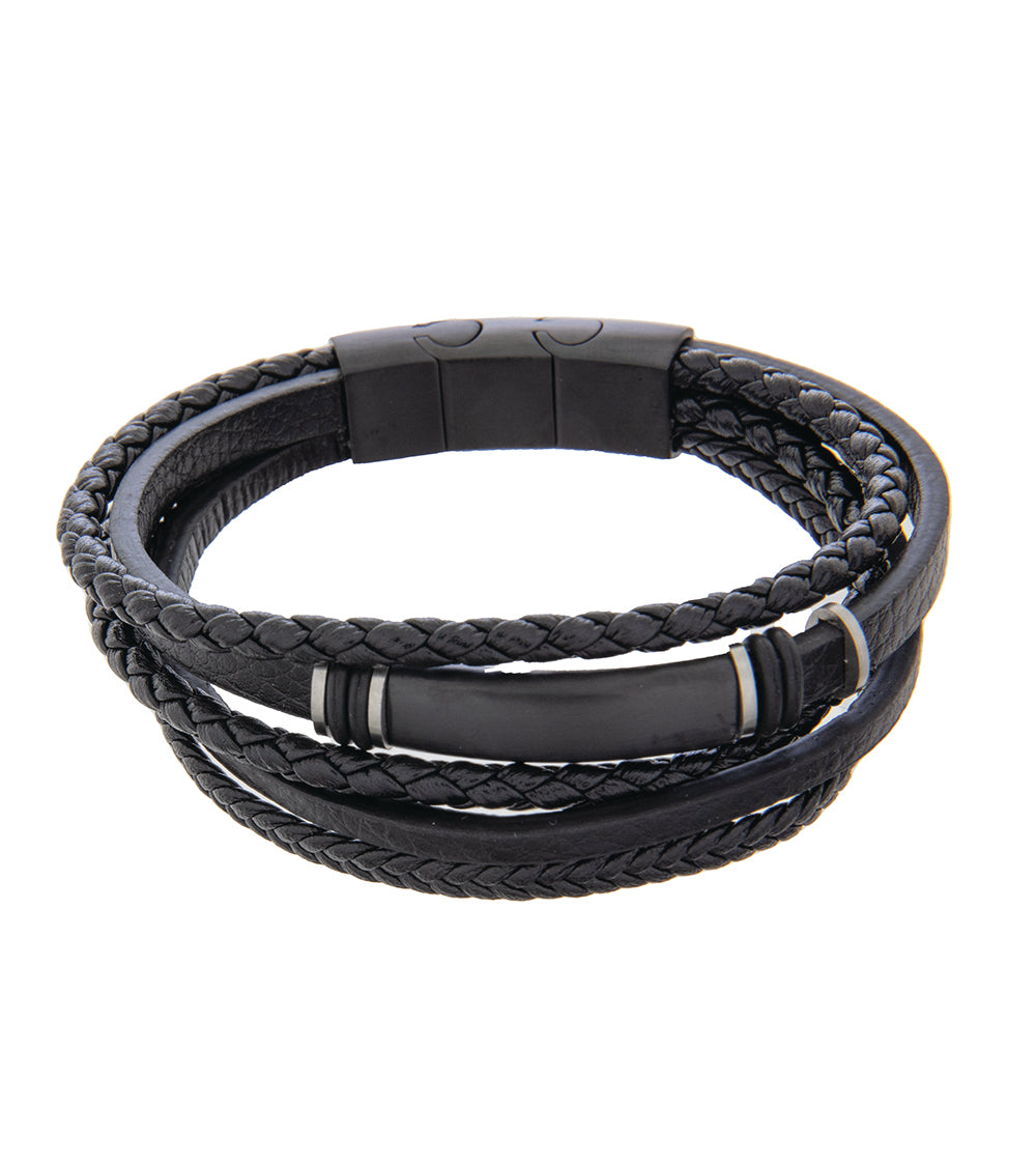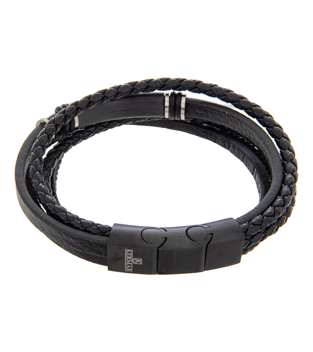 Pulsera para hombre 19-21cm Multipiel Negra con Acero Negro y extensor
