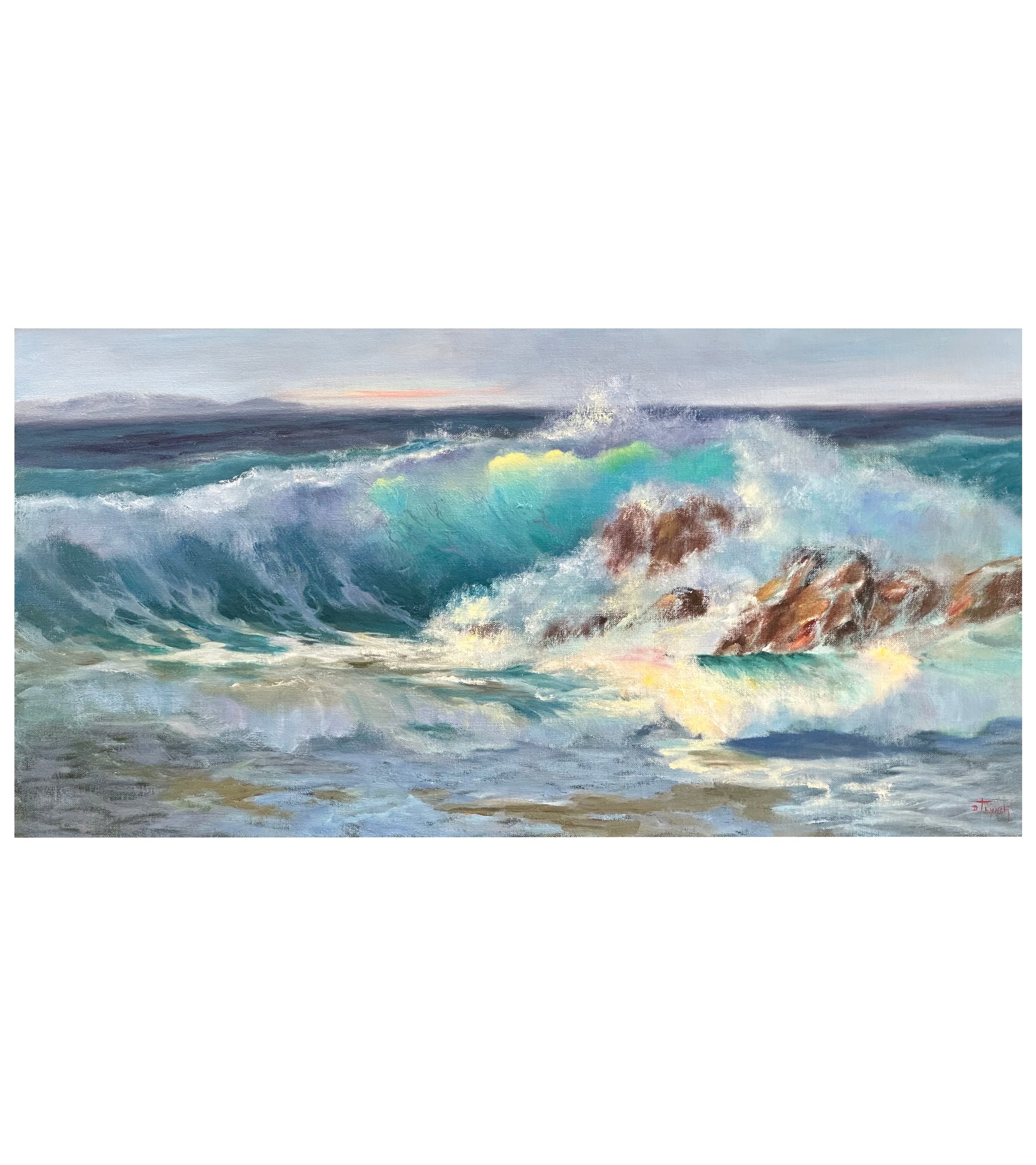 Sin embargo, a Deb le entusiasma especialmente pintar el océano Pacífico. Dice: «El océano es como nosotros: más profundo de lo que parece y ofrece más de lo que esperamos». Hay otra faceta del océano que fascina a Deb. Intenta capturar ese lado peligroso y poderoso del océano, y la belleza de su peligro inherente.