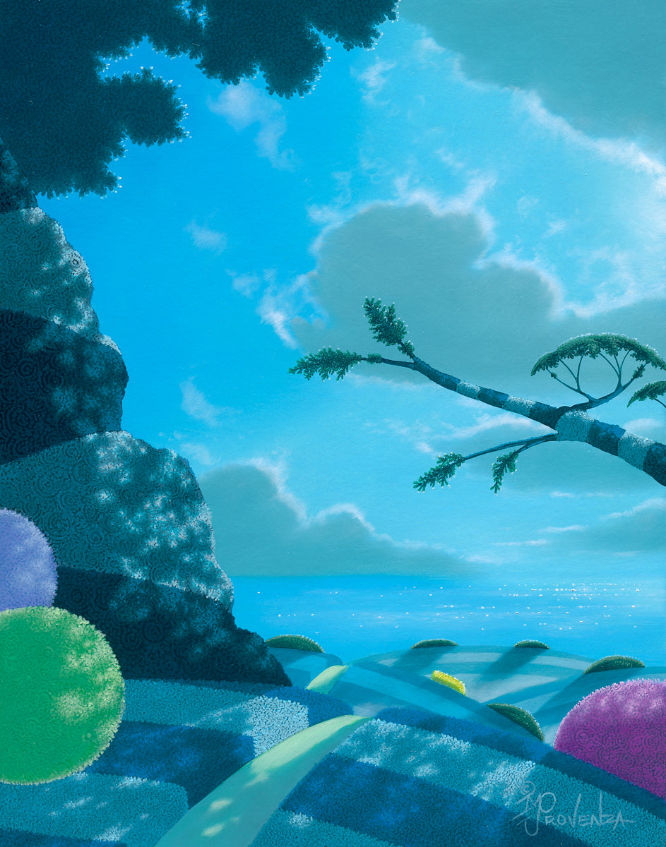 Estas experiencias han impulsado a Provenza a convertirse en un maestro de los paisajes fantásticos. Al contemplar una pintura de Provenza , uno siente que puede adentrarse en el lienzo. Pintando al óleo sobre lienzo, el arte de Provenza irradia un realismo fantástico, con una profundidad y dimensión asombrosas. «Mi pasión siempre ha sido pintar paisajes que inviten a los espectadores a sumergirse en mis pinturas y conectar con las diversas cualidades de la naturaleza».