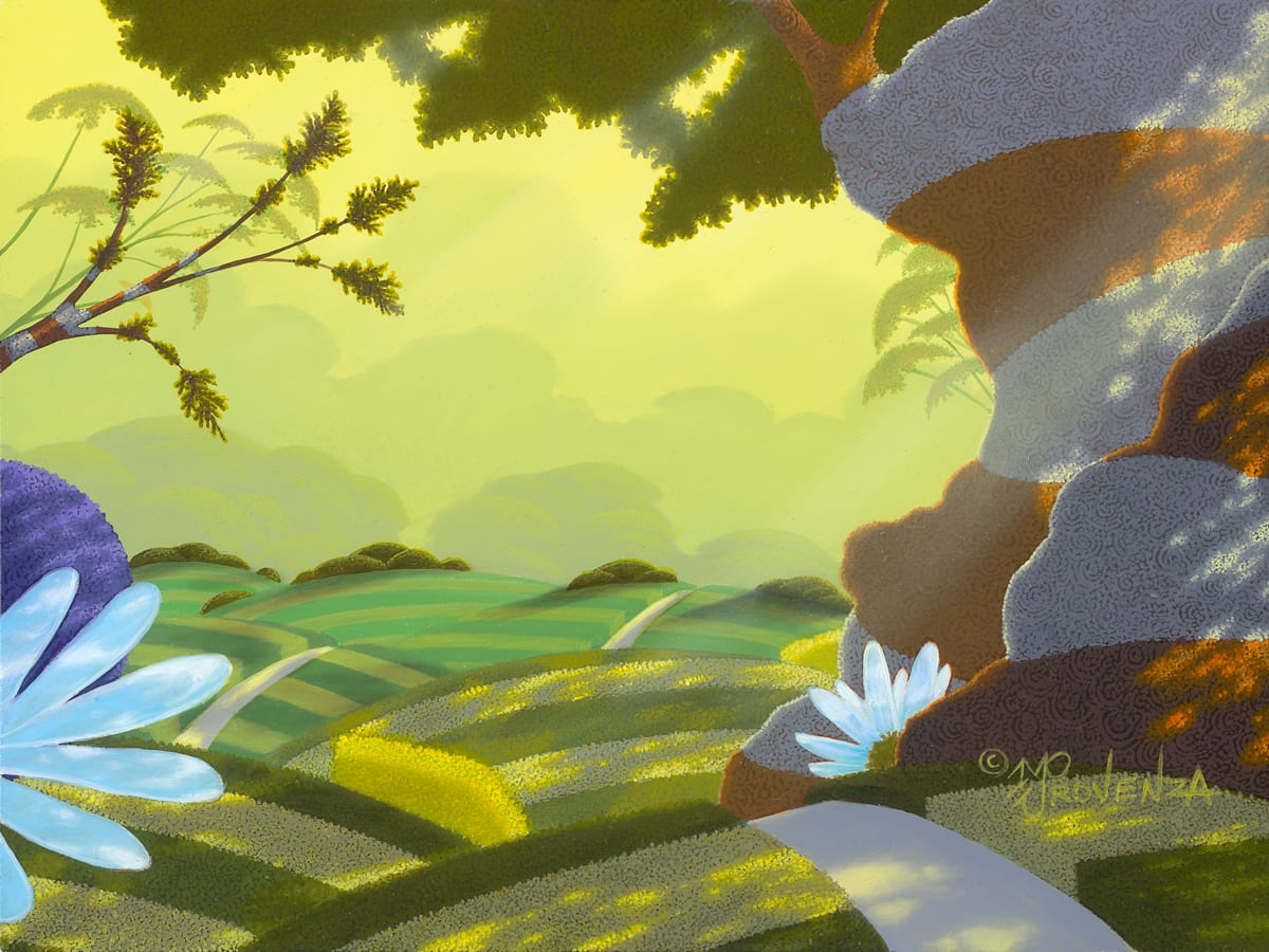 Michael Provenza es un pintor contemporáneo de paisajes al óleo que ha desarrollado un estilo puntillista distintivo y una técnica de fusión que emana una cualidad realista y dimensional, a la vez que surrealista y mágica. Posee una percepción totalmente original de la naturaleza y el paisaje. Las pinturas al óleo de Provenza revelan una acertada fusión de lo antiguo y lo moderno, fusionando una cualidad dimensional realista y notable con un entorno surrealista y mágico, en un estilo puntillista verdaderamente distintivo.