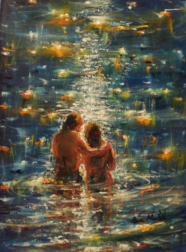 Pintura original: Luna plateada iluminada por las estrellas de Eva Makk