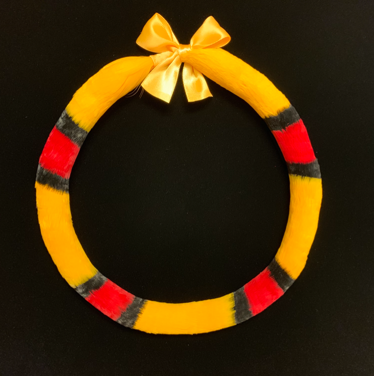 Boris elabora leis de diversos estilos con plumas de aves de diferentes especies, ninguna de ellas en peligro de extinción. Habrá ligeras variaciones en los colores de estos leis de plumas, ya que cada uno es una obra de arte hecha a mano.