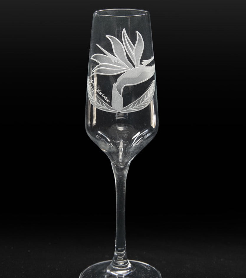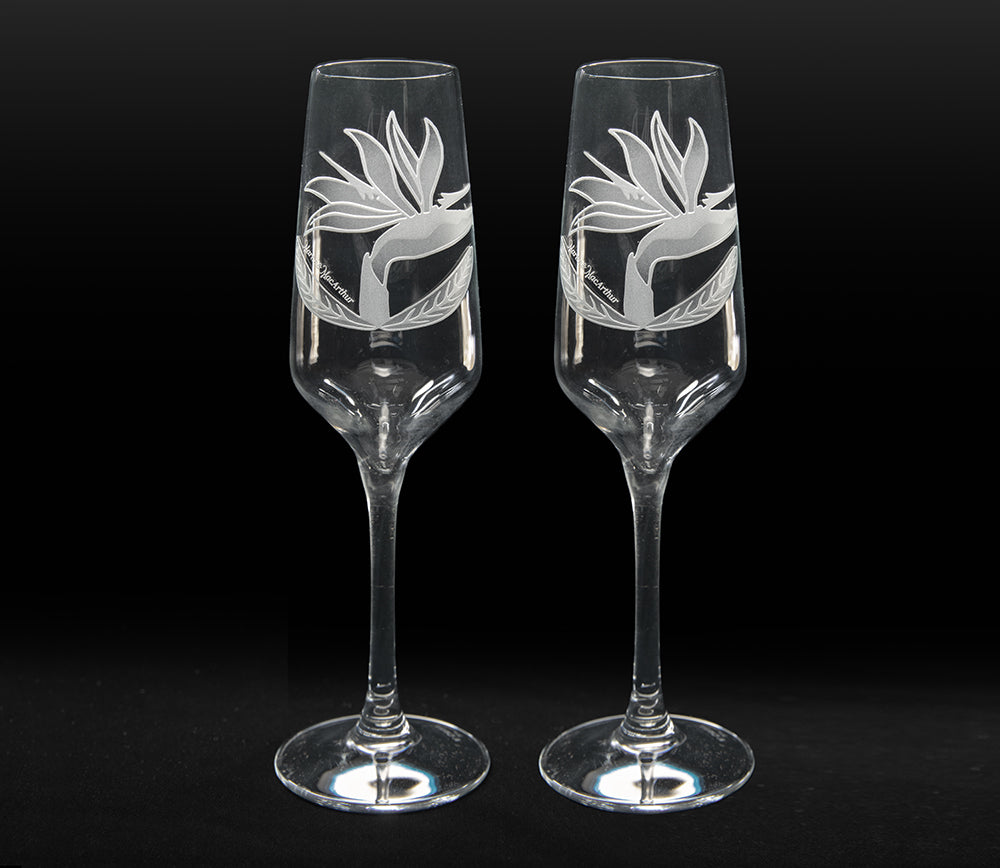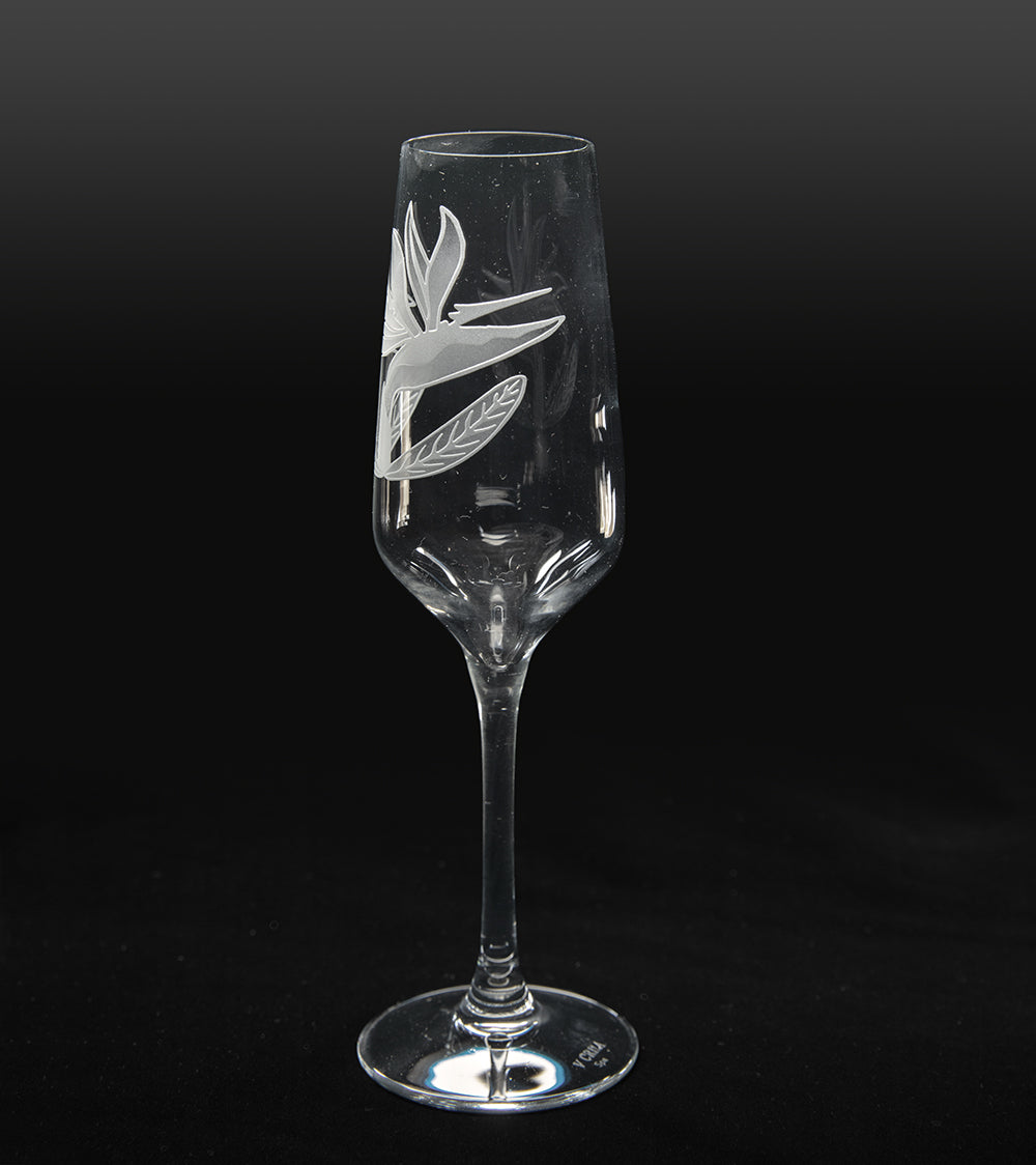 Ave del Paraíso grabada en arena, champán. Juego de 2