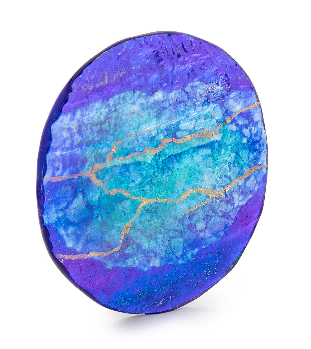 ハワイのアーティスト、マリアン・フィールドソンは、ハワイ島の自宅近くを流れる溶岩にインスピレーションを得た、印象的なガラス彫刻を制作しています。マリアンは溶岩で型を作り、そこに特殊なガラスの破片、粉末、糸を詰め込みます。そして、ガラス片が融合して一つの作品になるまで窯で焼き上げます。
