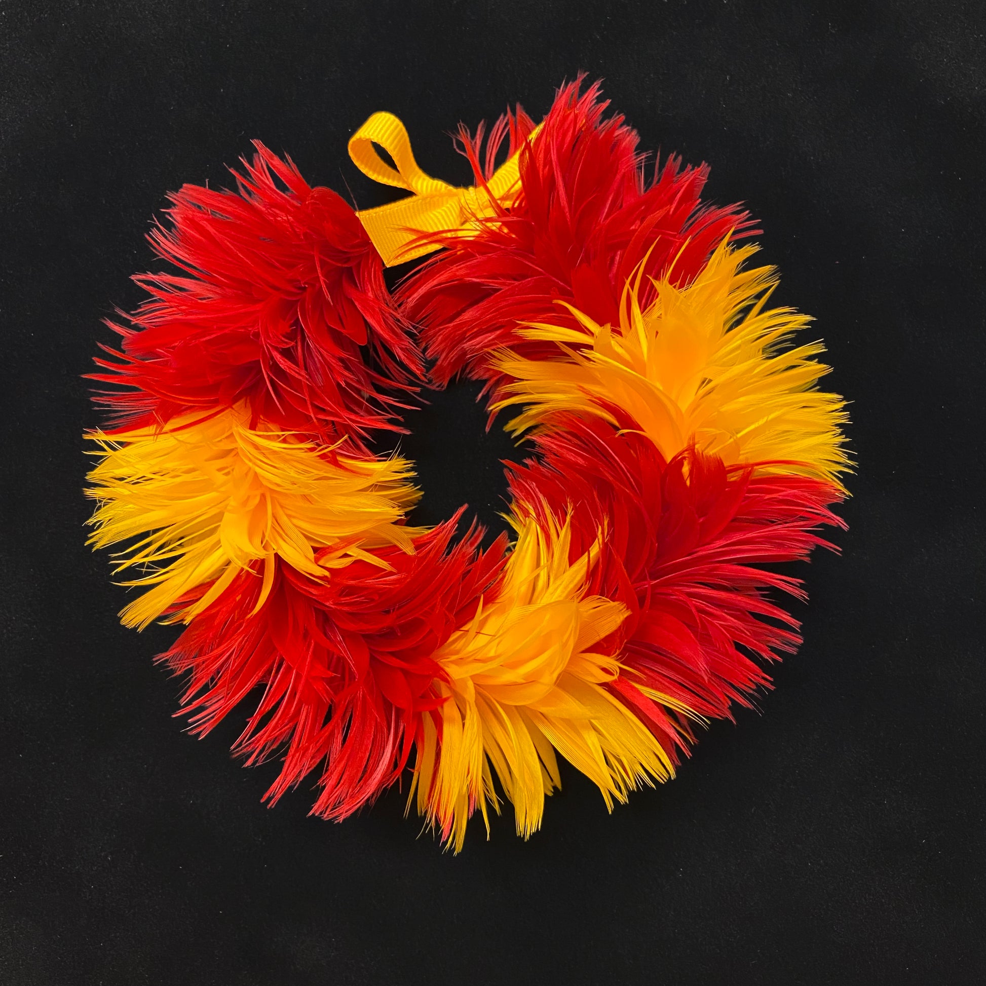 ハワイアン・フェザーレイの達人、ボリス・ケカイウルイカヒキナ・フアンが、この美しいハワイアン・フェザーレイを制作します。彼は、故アンティ・メアリー・ルー・ケクエワという著名なフェザーレイ職人から受け継いだハワイの古来の技法を用い、一枚一枚のフェザーを手作業で結び付けています。