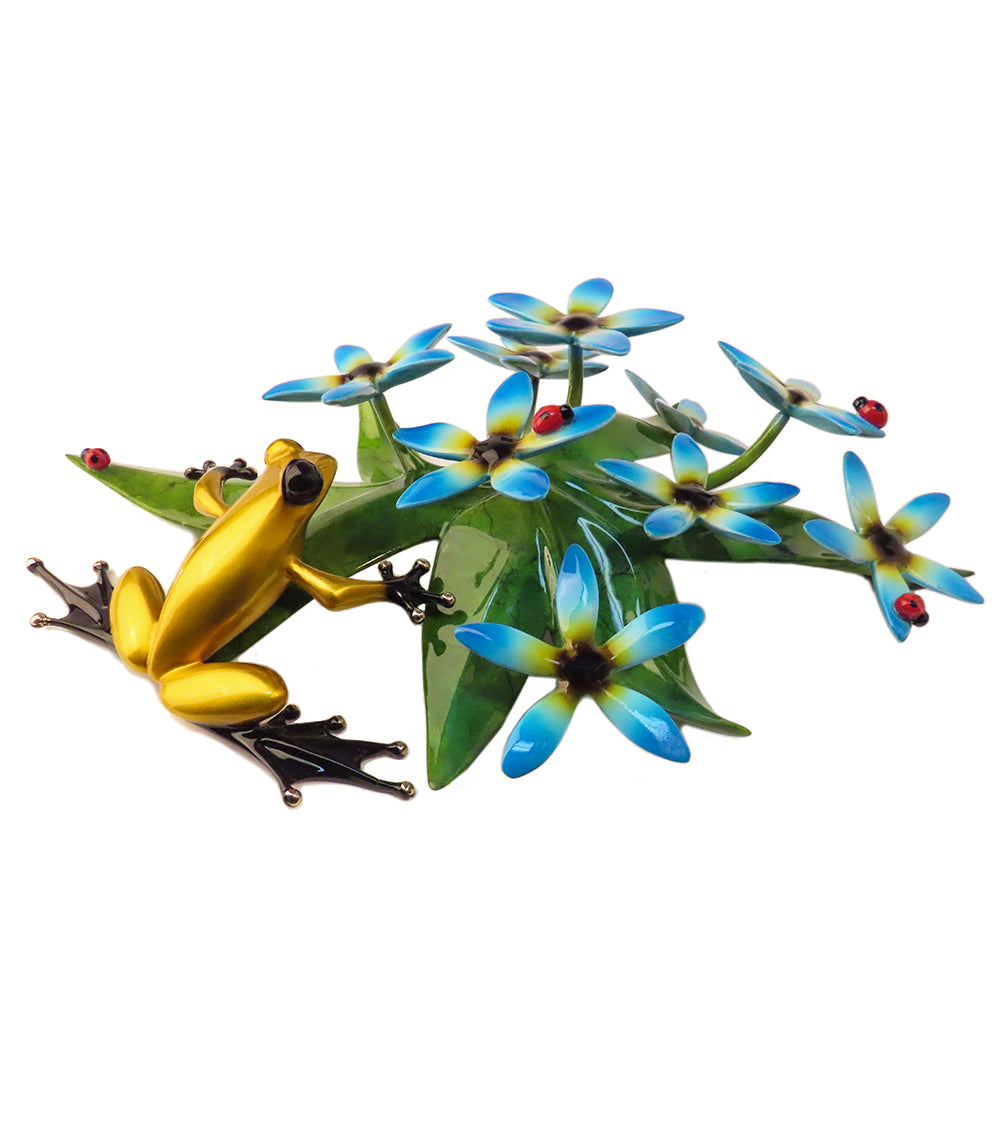イギリスで育ったティム・コテリルは、カエル、イモリ、ヒキガエルを探して緑豊かな田園地帯を歩き回っていました。1990年にカリフォルニア州ベニスに移り住み、そこでお気に入りの両生類のブロンズ像を作り始めました。彼は、カエルは人間と同じように、それぞれに特別な個性と気質を持っていると信じています。