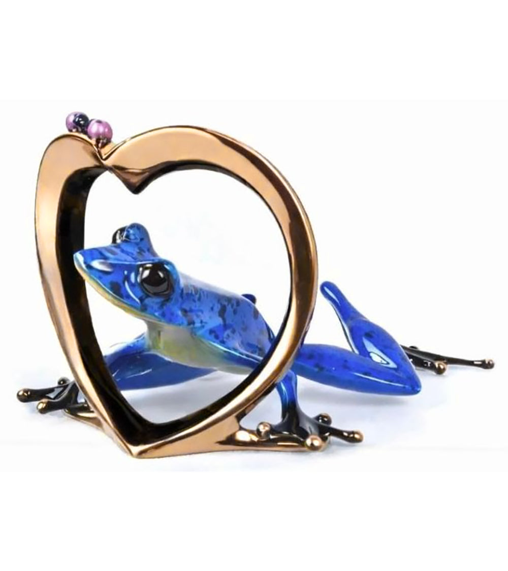 イギリスで育ったティム・コッテリルは、カエル、イモリ、ヒキガエルを探して緑豊かな田園地帯を歩き回っていました。1990年にカリフォルニア州ベニスに魅了されたティムは、そこでお気に入りの両生類のブロンズ像を作り始めました。彼は、人間と同じように、それぞれのカエルにも特別な個性と態度があると信じています。