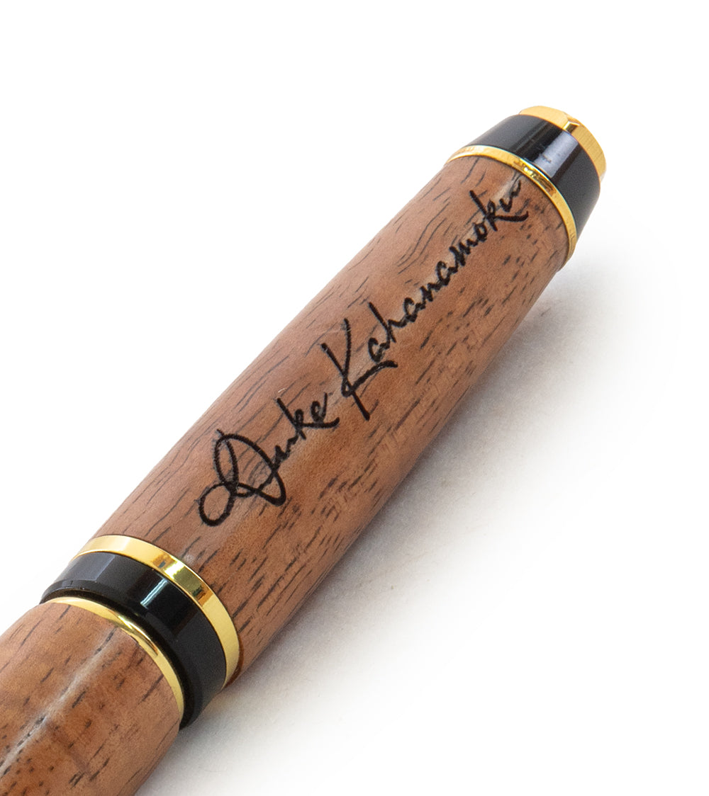 コア・ビッグベン・ゴールドペンは、ハワイ島産のコア材を厳選して製造されています。重厚でスタイリッシュなデザインは、ご自宅でもオフィスでも、メモ書き、買い物リストの作成、和平条約への署名など、どんな用途にも最適です。どんな用途でも、コアペンはアロハの香りとともに、プロフェッショナルなパフォーマンスを発揮します。