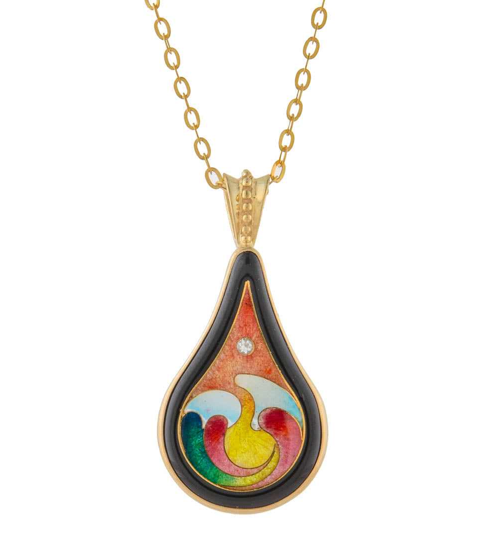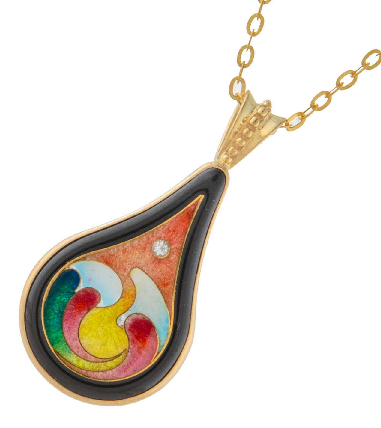 - 14Kイエローゴールドにセットされた24Kゴールドの七宝焼き