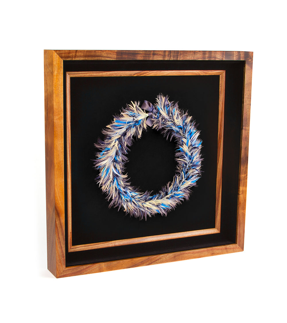 熟練のハワイアン・フェザーレイ・アーティスト、ボリス・ケカイウルイカヒキナ・フアンが、この素晴らしいハワイアン・フェザーレイを制作しました。彼は、故アンティ・メアリー・ルー・ケクエワという著名なフェザーレイ職人から受け継いだ、ハワイの伝統的な技法を用いて、一枚一枚のフェザーを丁寧に手作業で結び付けています。