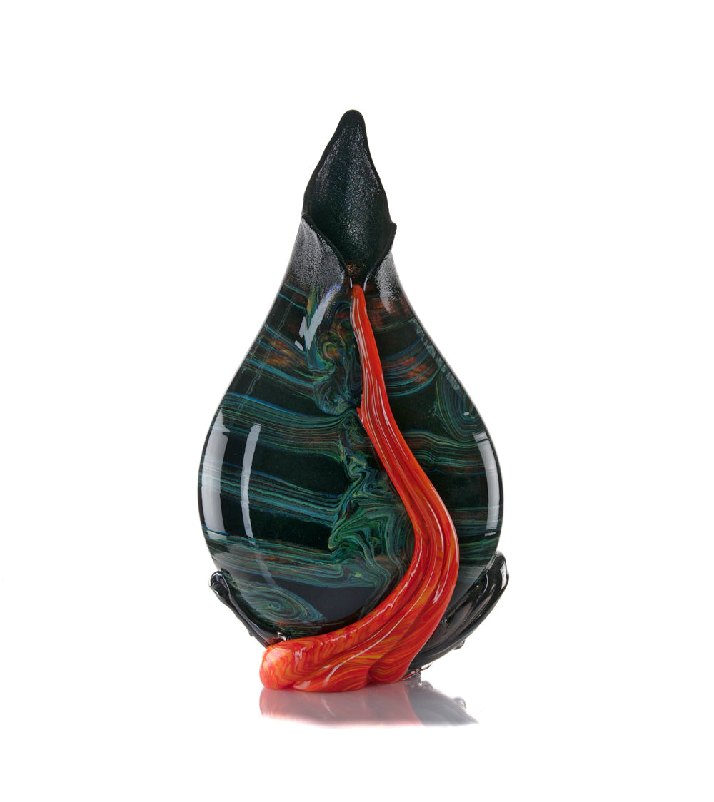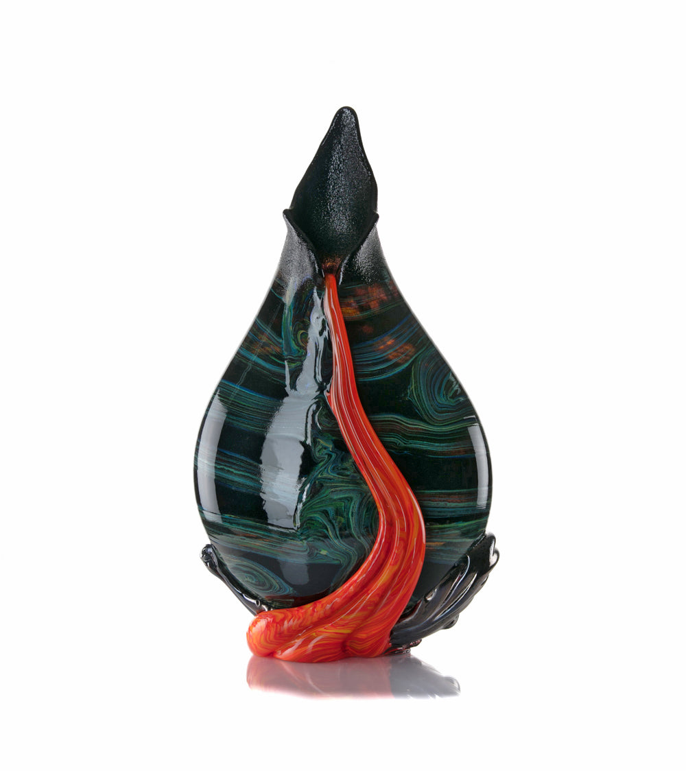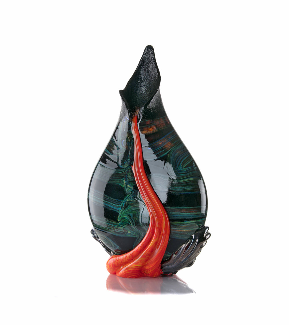 ダニエルは、地球の中心核から湧き出るマグマの、輝きと生々しいエネルギーを表現するために、キラウエア火山ガラスコレクションを制作しました。溶岩の色は鮮やかで、周囲のすべてが霞んで見えるほどです。溶岩の流れは容赦なく、予測不可能です。