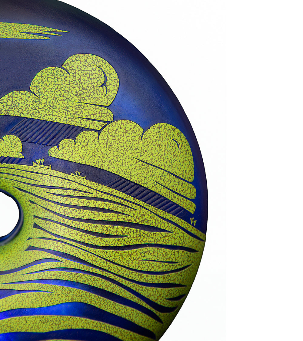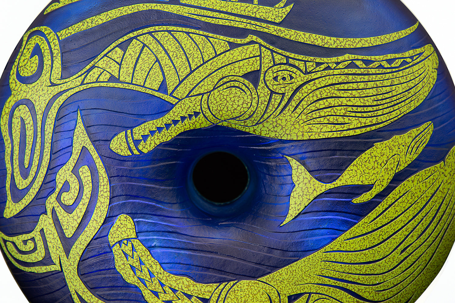 ダニエルはこう語ります。「私は、自然への愛と繋がりを表現する媒体として、ガラスに魅了されました。流動的な状態のガラスに近づくと、その繋がりが深まるように感じます。この神聖な空間に意識を向けることで、地球の要素と私自身の要素との繋がりを理解することができます。」