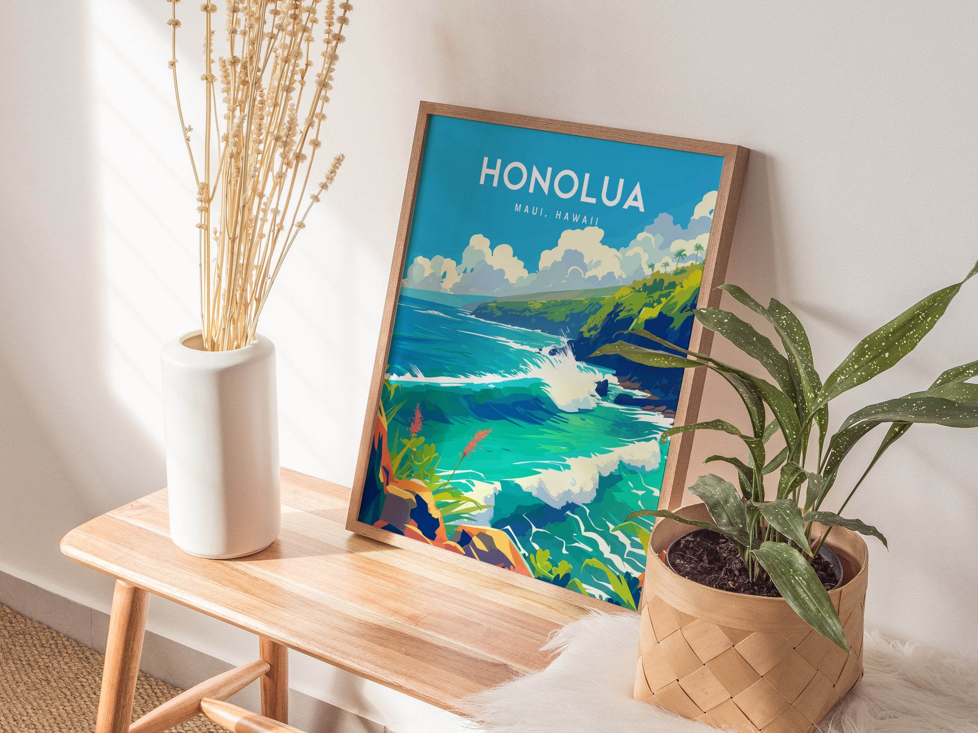地元民と観光客の魅力: マウイ島の海と深いつながりを持つカマアイナ (地元民) であっても、西マウイ島の海岸沿いの魅力に魅了された観光客であっても、このアート作品はホノルア湾の魔法を体験した人なら誰にでも共感を呼ぶでしょう。