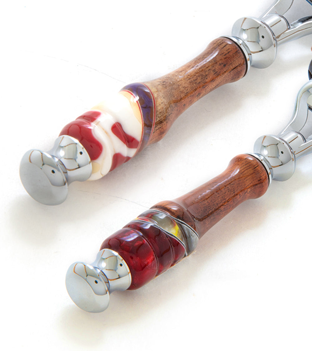 - ドロップダウンメニューから色をお選びください。樹脂の色はそれぞれ異なり、それぞれ異なることをご承知おきください。写真に表示されている色や模様はあくまでもイメージです。お客様のカミソリは写真と全く同じではありません。「色のご希望なし」とご指定いただいた場合は、美しい色の中からお選びいただけます。