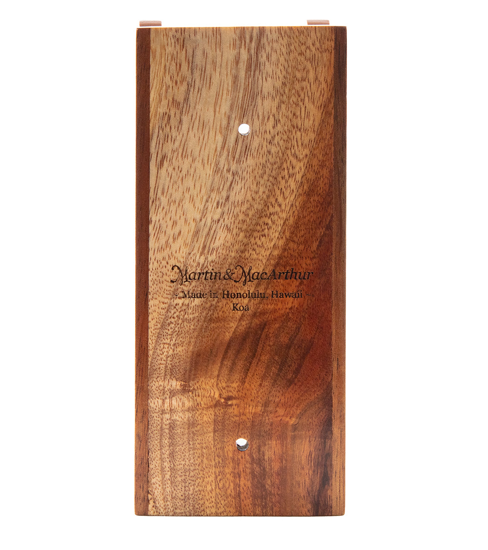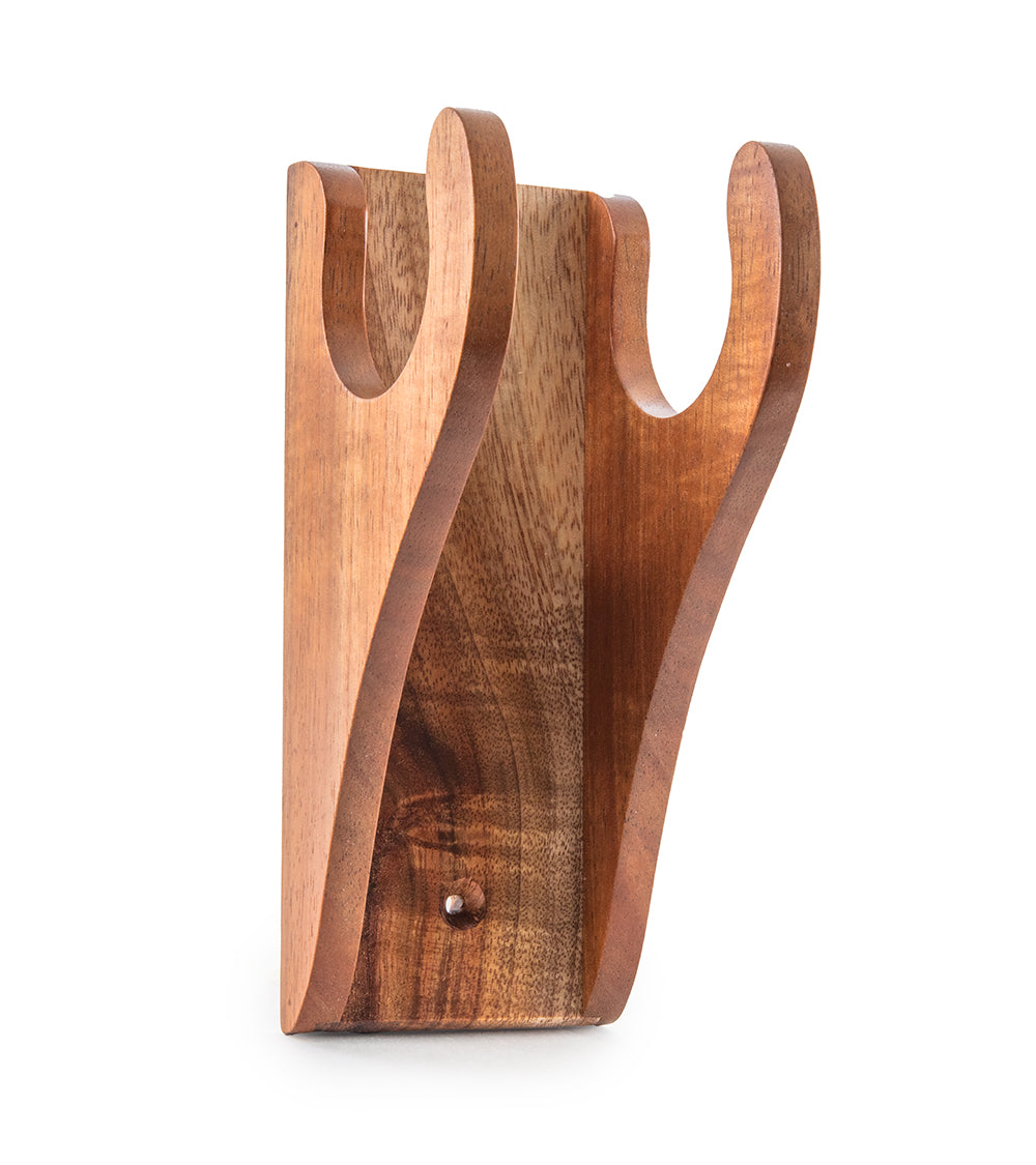 ソリッドコアパドルを飾るなら、特別にデザインされたコアパドルホルダーが最適です。Martin & MacArthurの職人がハワイ島産のコア材を使ってこのパドルホルダーを製作しています。パドルを壁に掛けて飾るのに最適です。