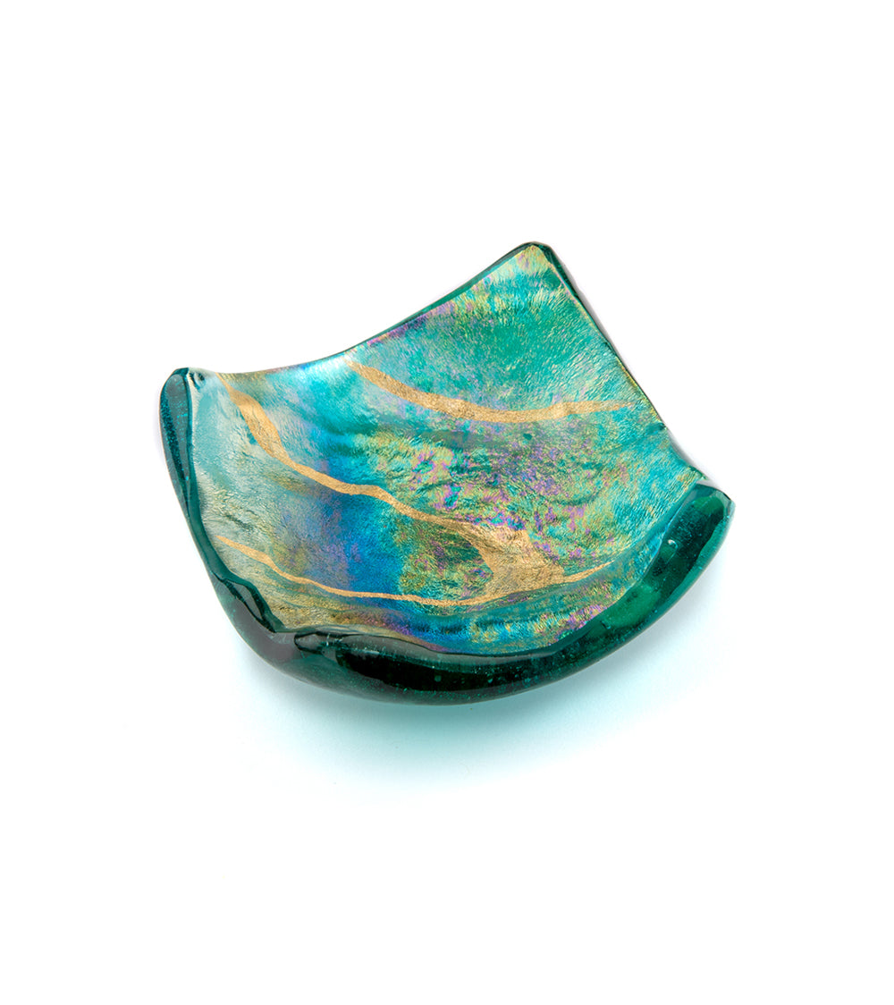 マリアン・フィールドソン作 3インチ x 3インチ 溶岩ガラス カプリグリーン トレイ