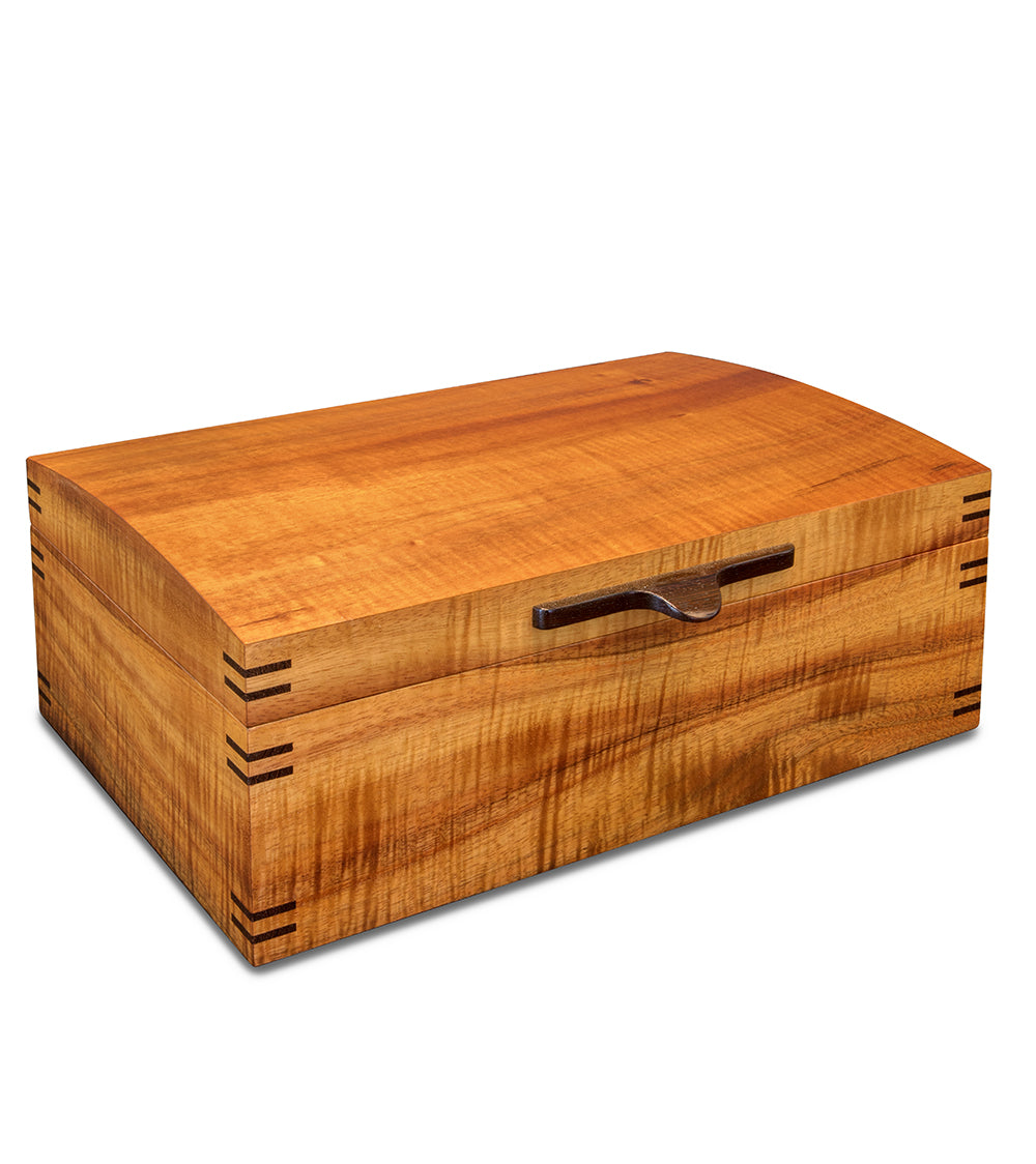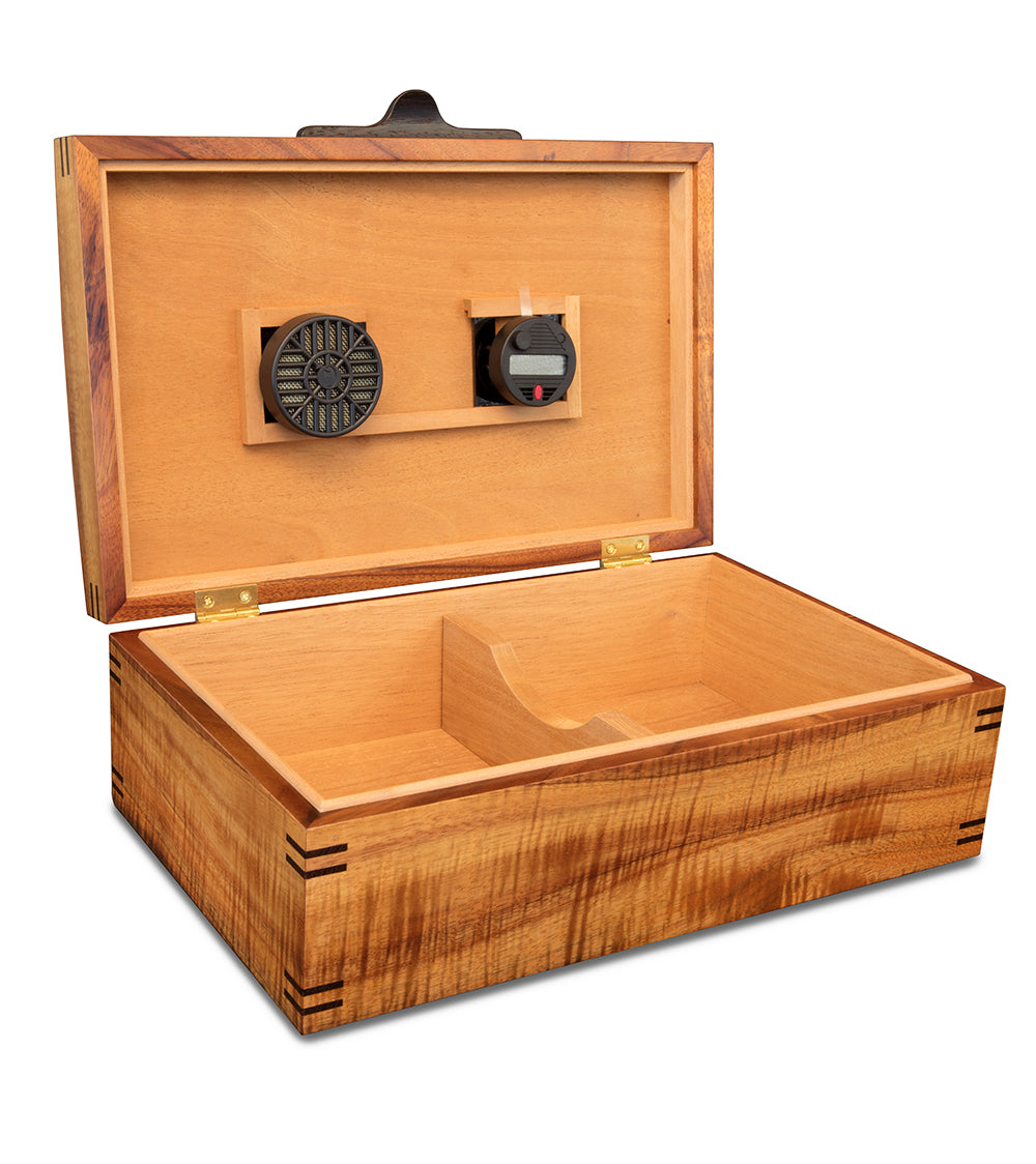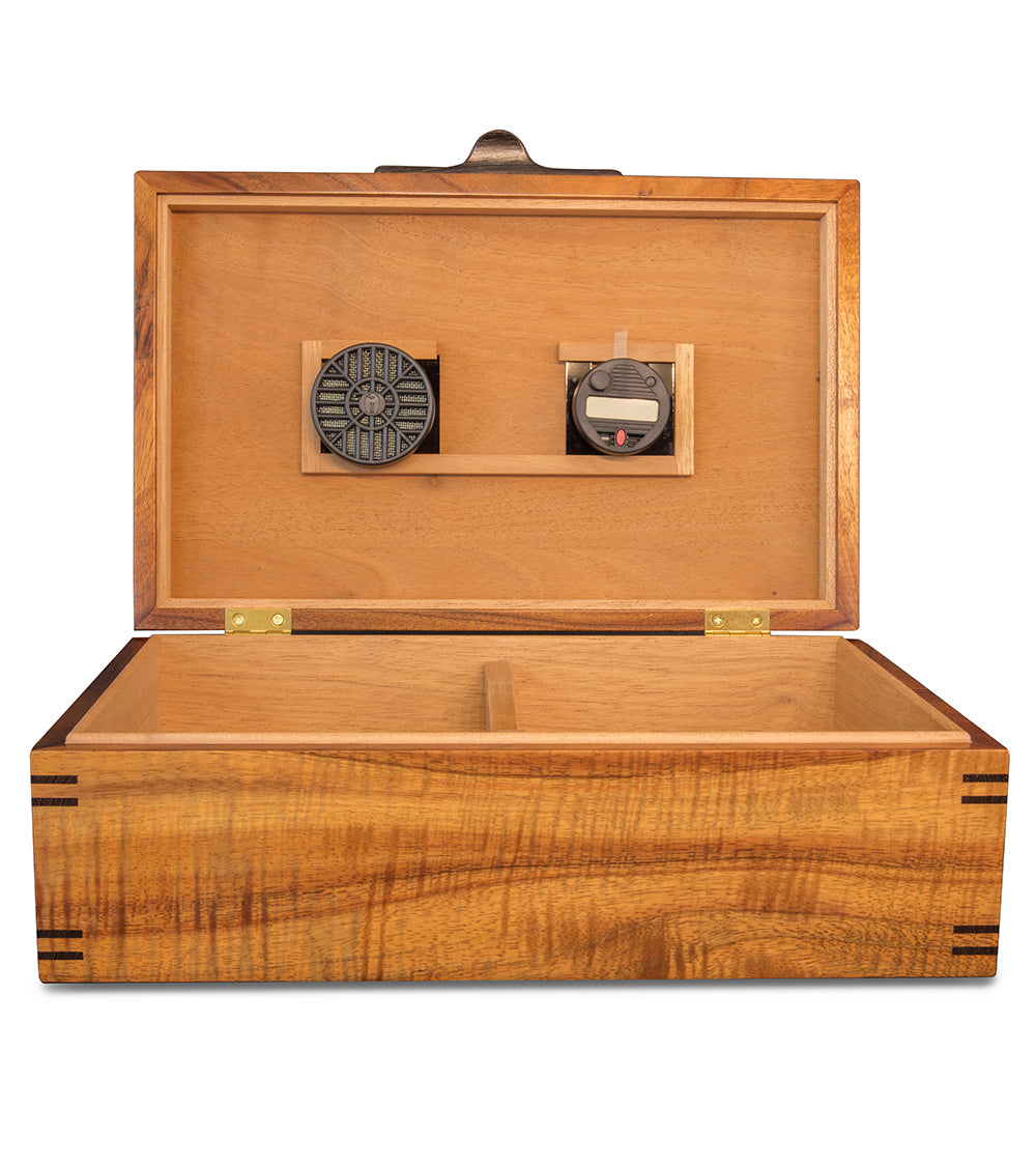 当社のコアヒュミドールは、ハワイ島産の美しいコア材を使用し、スペインシダー材で裏打ちされています。マホガニーのスプラインが接合部を補強し、装飾的なアクセントを加えています。スペインシダーは、高い保湿性と葉巻に芳醇な香りを与えることから、高級ヒュミドールに使用されています。