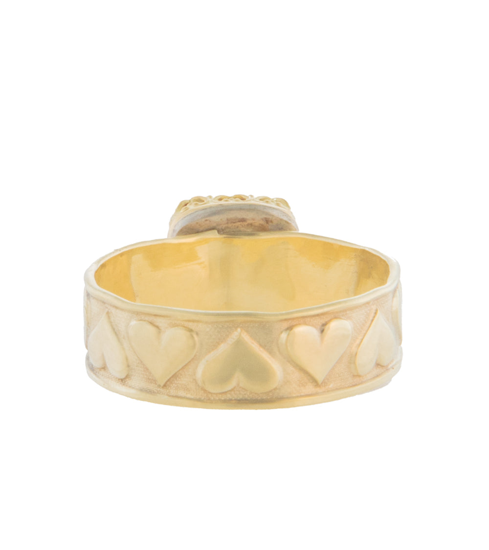 ベゼル、14Kソリッドゴールドのハート型装飾リングシャンク、14Kソリッドローズゴールドディスク