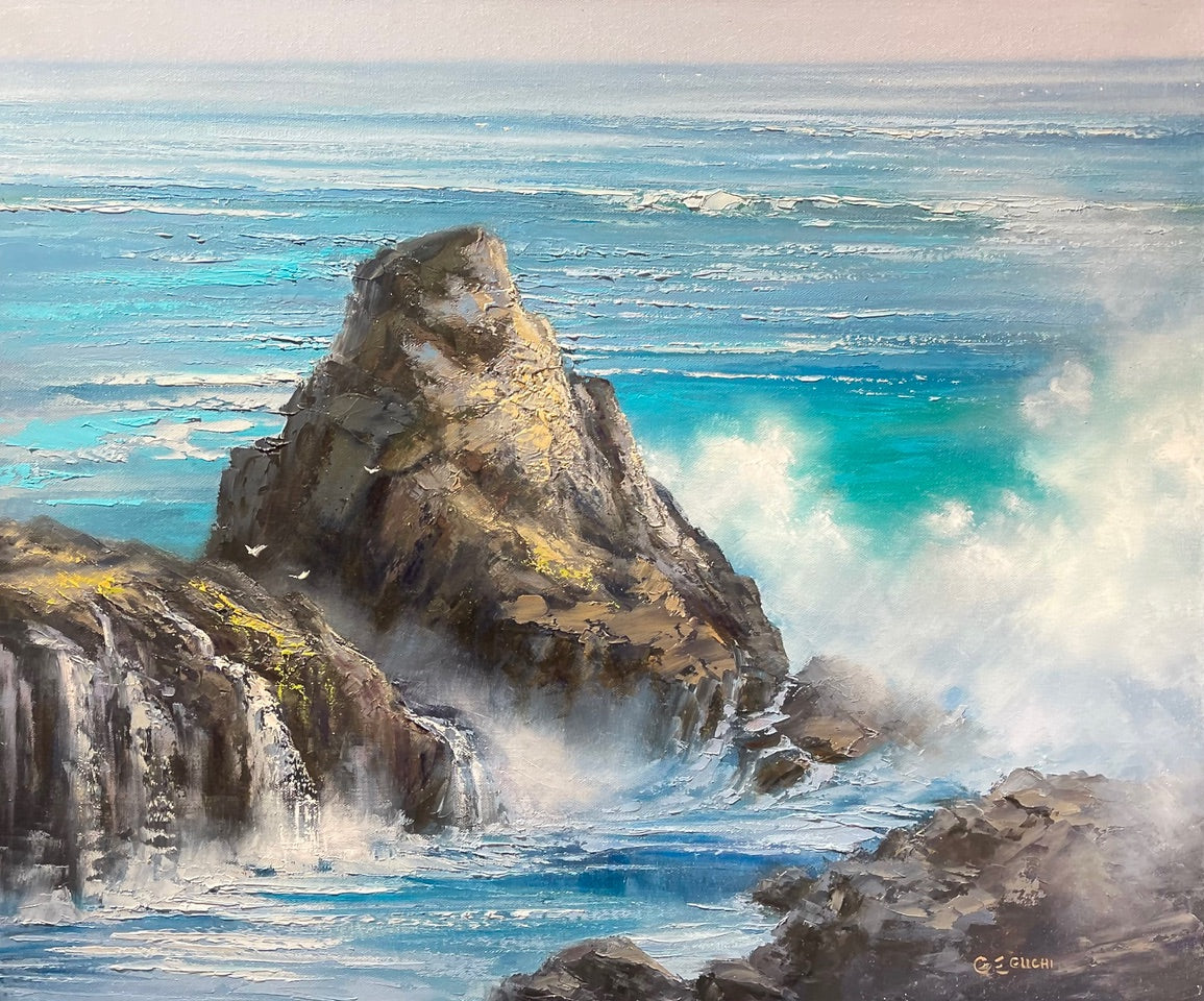 ハワイ生まれのジョージ・エグチは、作品を通して故郷への深い愛情を表現しています。彼の絵画は、真実味のある色彩を描き出し、一日の移り変わりとともに自然の精霊を鮮やかに描き出しています。霧に隠れた魔法のような瞬間、雲に覆われた山々と太陽に照らされた谷。