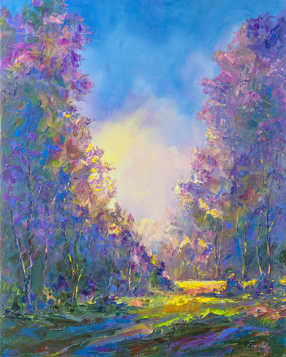 マイケル・パウエルは、光、色彩、構図を巧みに融合させた、幽玄な絵画を制作しています。それは見る人を別の世界へと誘い、安らぎと安らぎを見出す場所へと誘います。マイケルは、ハワイの伝説的画家、田上博志と共に過ごしたカハルウ・エステートでの長年の暮らしからインスピレーションを得た風景画を好んで描いています。彼らの住居は、エキゾチックな植物や花々を配した、アートと自然を融合させたオープンスタイルの住居兼スタジオ兼ギャラリーでした。タガミ&パウエル・ギャラリーは、創造性、音楽、笑い、そして癒しの空間として広く知られていました。