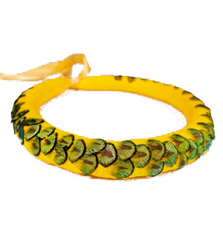 黄氏は、一枚一枚の羽根を布製のネットに一つ一つ結び付ける、手間のかかる技法の達人です。羽根は、換羽やその他の無害な方法で採取された持続可能な方法で調達されています。黄氏が制作を始める前に、羽根は丁寧に洗浄、清掃、乾燥されます。鳥の部位によって品質が異なり、こうした微妙な違いが、作品の美的価値を決定づける重要な要素となります。