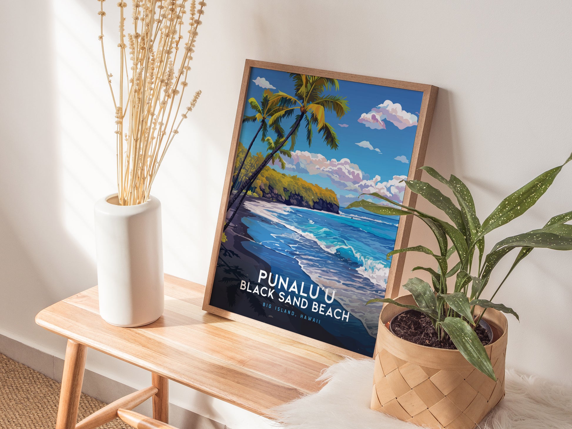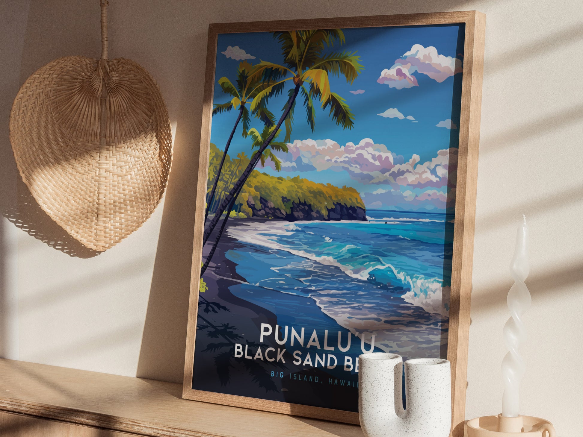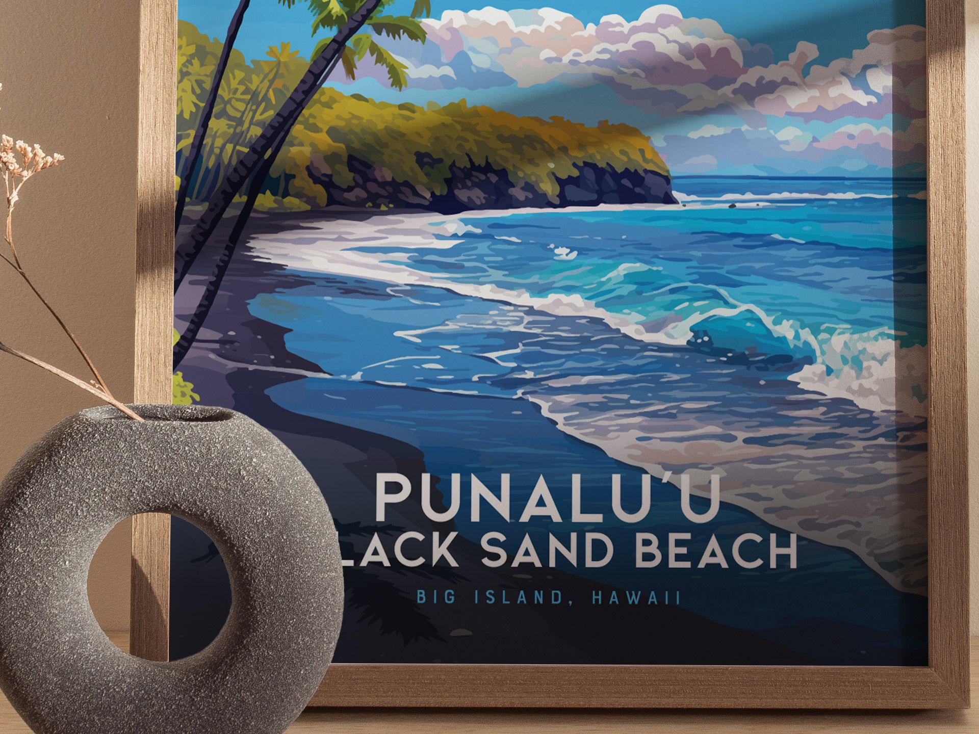 – 高品質印刷:最高級紙に高度なジクレー印刷技術を用いて制作されたプナルウビーチの豊かな色彩とディテールが、生き生きと鮮やかに再現されています。すぐに飾れる洗練された額入りバージョンと、お好みに合わせてカスタマイズできる額なしバージョンからお選びいただけます。