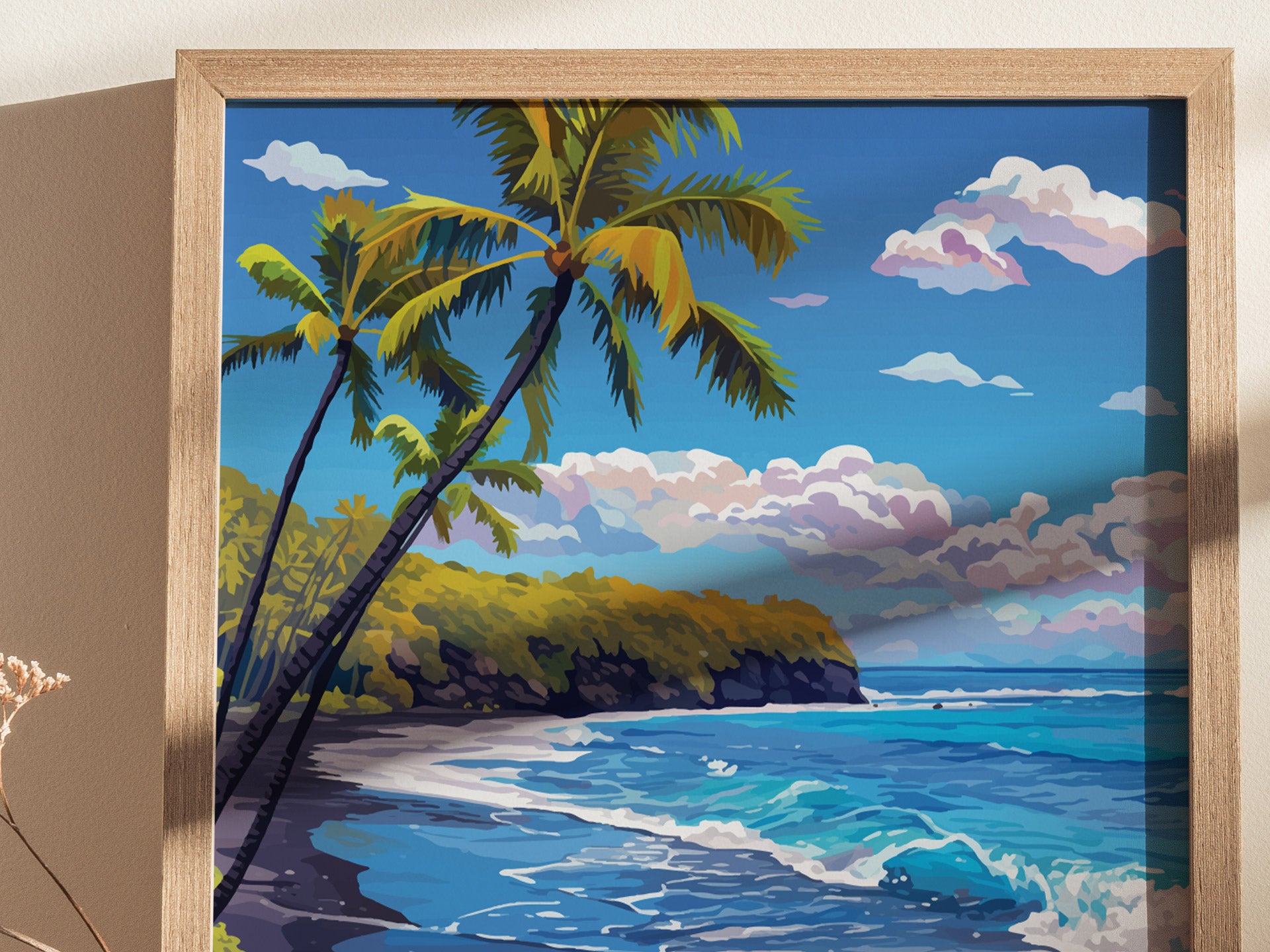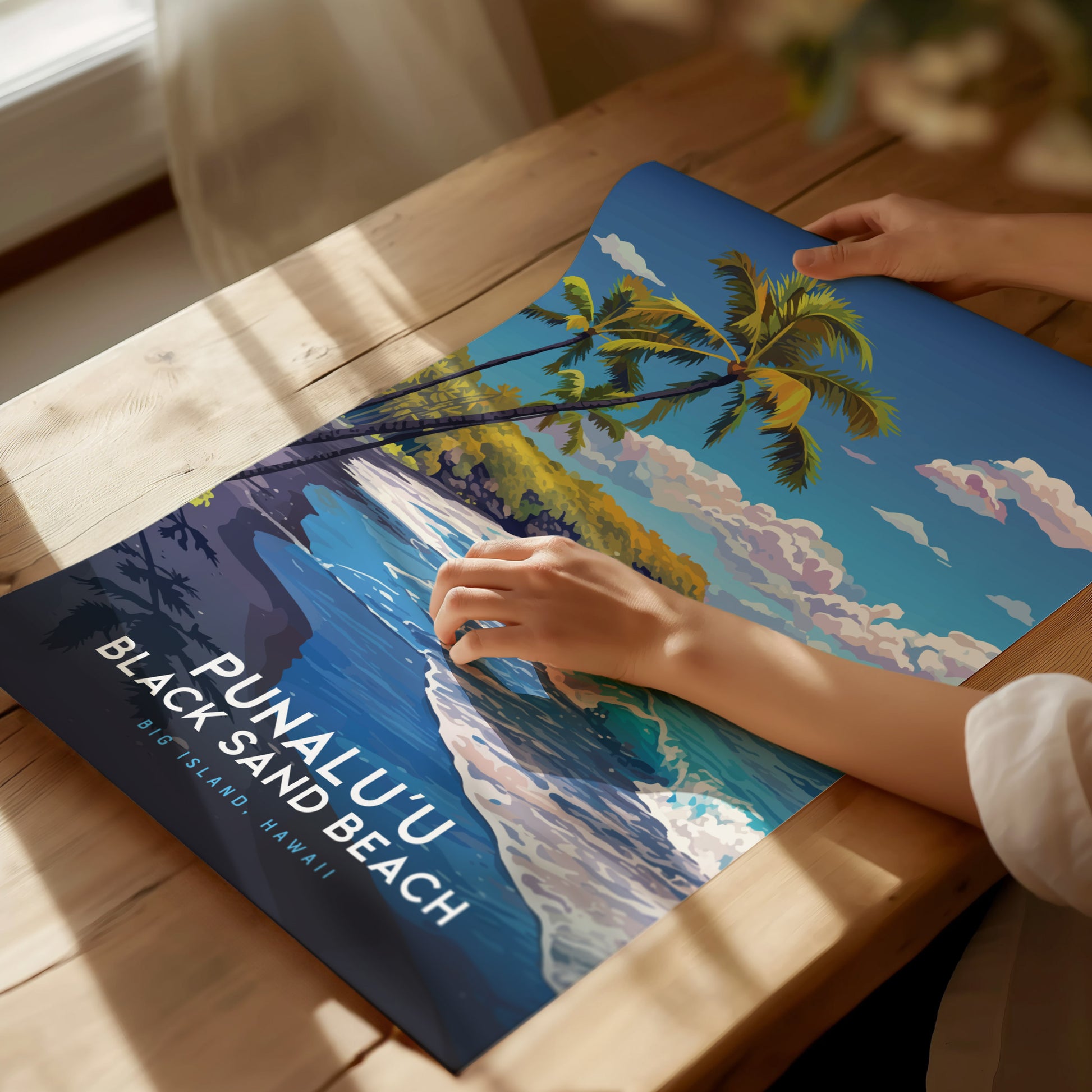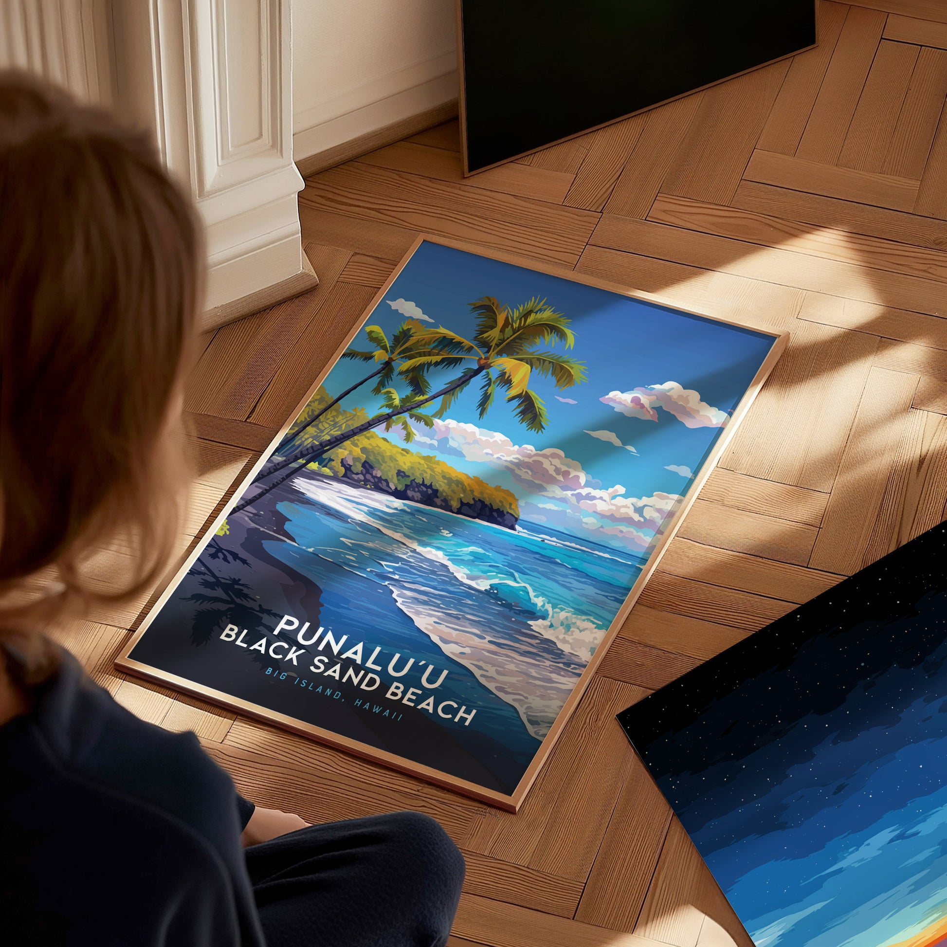 – 高品質印刷:最高級紙に高度なジクレー印刷技術を用いて制作されたプナルウビーチの豊かな色彩とディテールが、生き生きと鮮やかに再現されています。すぐに飾れる洗練された額入りバージョンと、お好みに合わせてカスタマイズできる額なしバージョンからお選びいただけます。