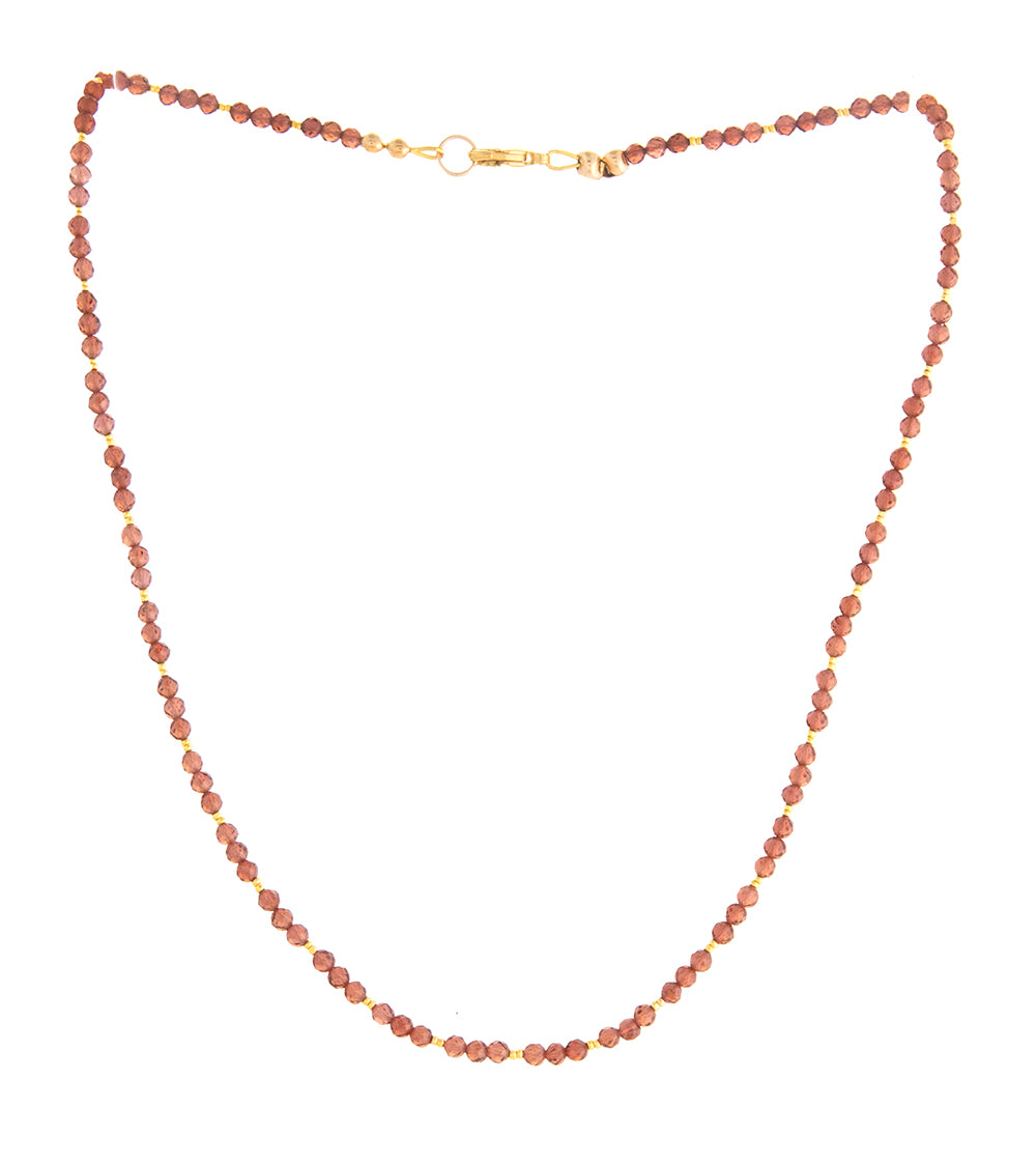 ネックレス:ファセット加工を施したレッドガーネット、すべて天然素材、金張り(14金/金属重量の5%)留め具と金具、ガラスシードビーズに24金を使用