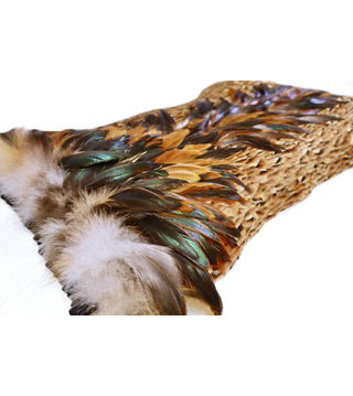 黄氏は、一枚一枚の羽根を布製のネットに一つ一つ結び付ける、手間のかかる技法の達人です。羽根は、換羽やその他の無害な方法で採取された持続可能な方法で調達されています。黄氏が制作を始める前に、羽根は丁寧に洗浄、清掃、乾燥されます。鳥の部位によって品質が異なり、こうした微妙な違いが、作品の美的価値を決定づける重要な要素となります。